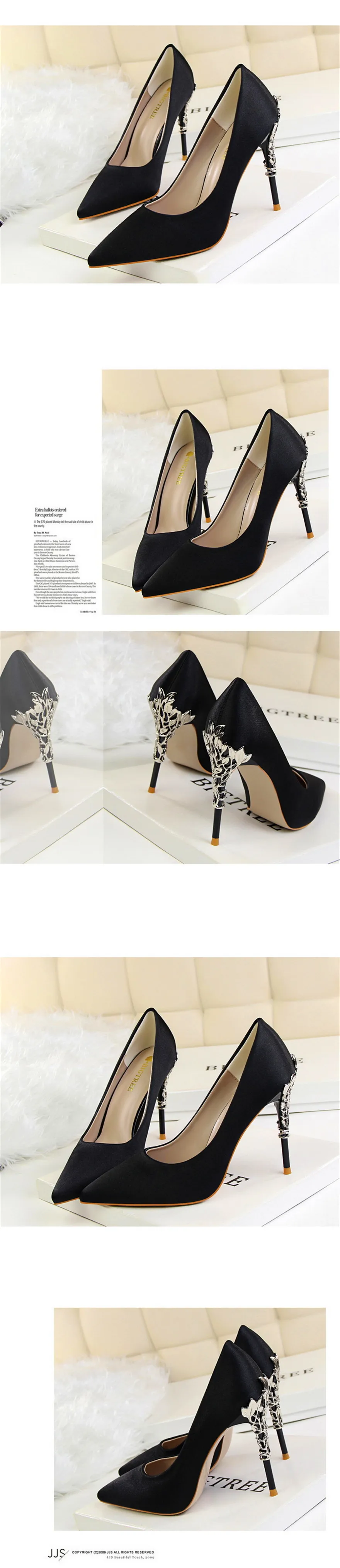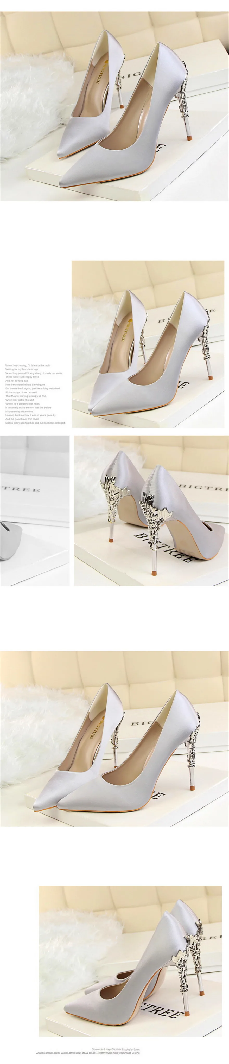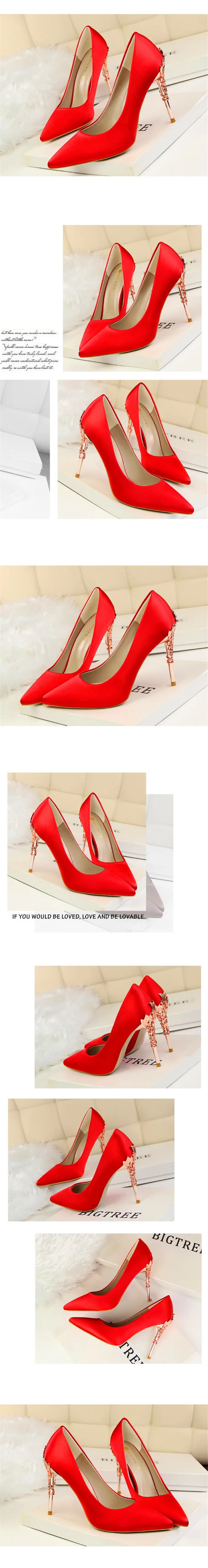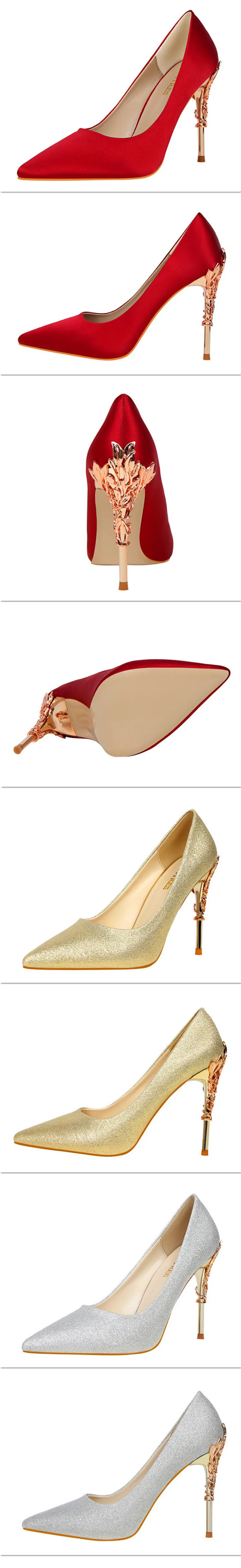 2023 جديد أنيق المعادن منحوتة كعب النساء أحذية الصلبة الحرير أشار تو الضحلة موضة عالية الكعب 10 سنتيمتر فستان الزفاف الإناث الأحذية