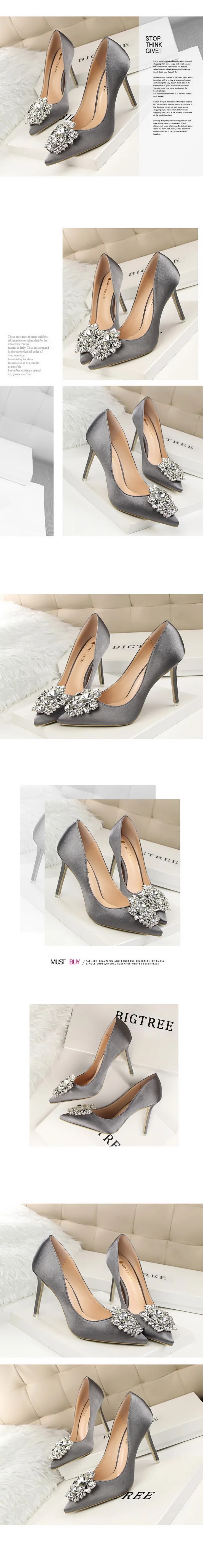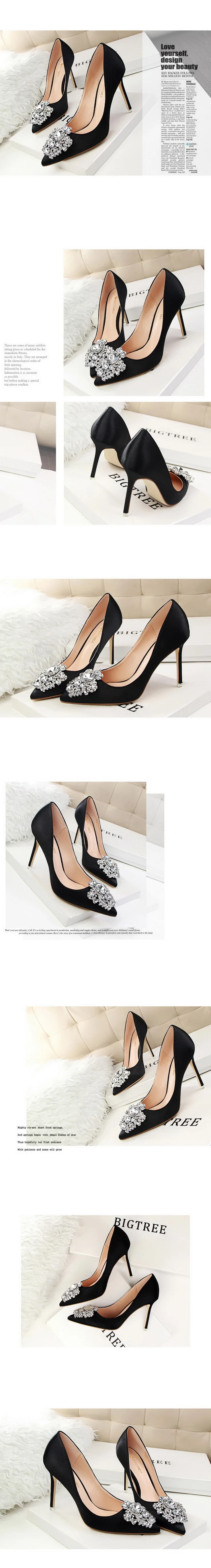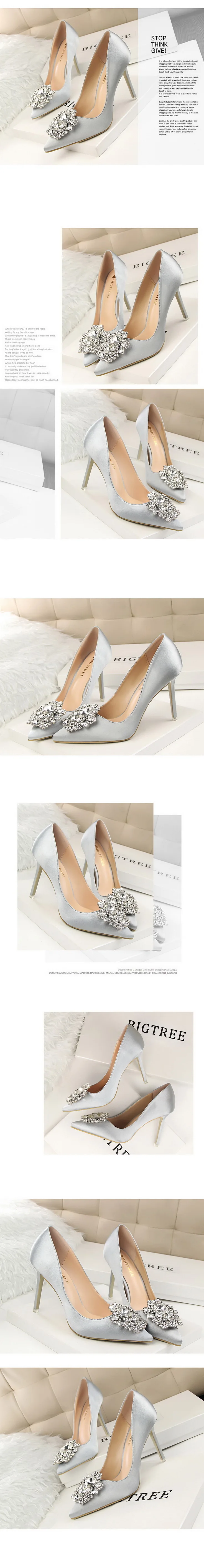 أحذية الزفاف الربيع حذاء أنيقة المرأة الكعوب مشبك الكريستال الحرير الساتان أحذية عالية الكريستال كعب مثير وأشار السيدات الأحذية