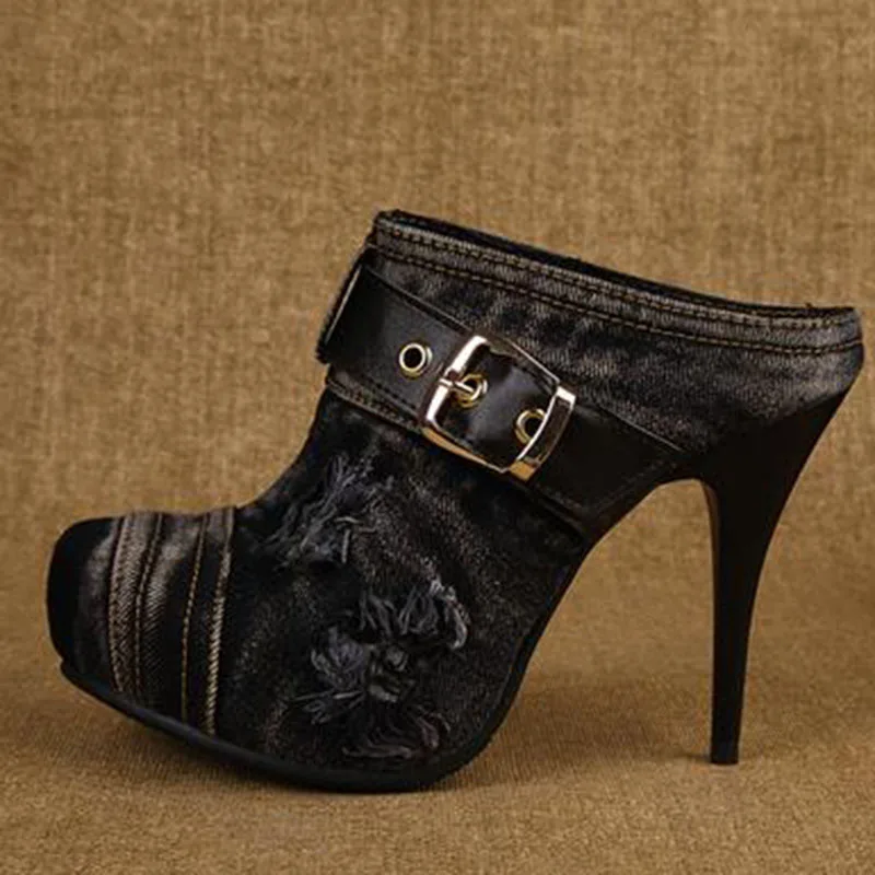 جديد أحذية بكعب عالي مقاوم للماء تايوان رئيس مستديرة الجوف خارج أحذية كعب حزام كاوبوي موضة الصنادل مثير ، النعال
