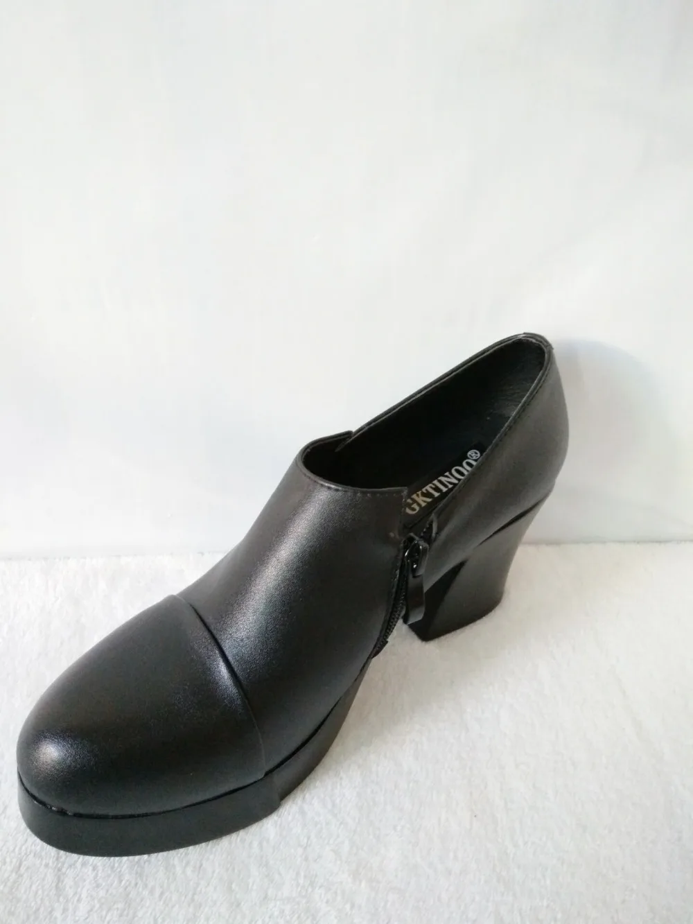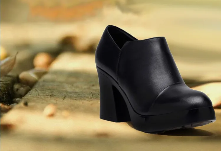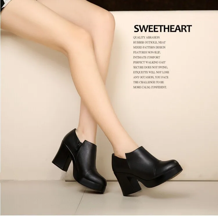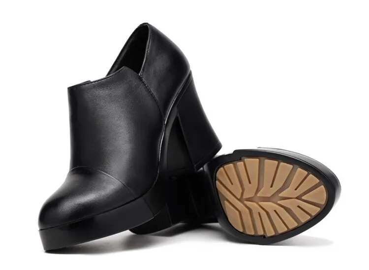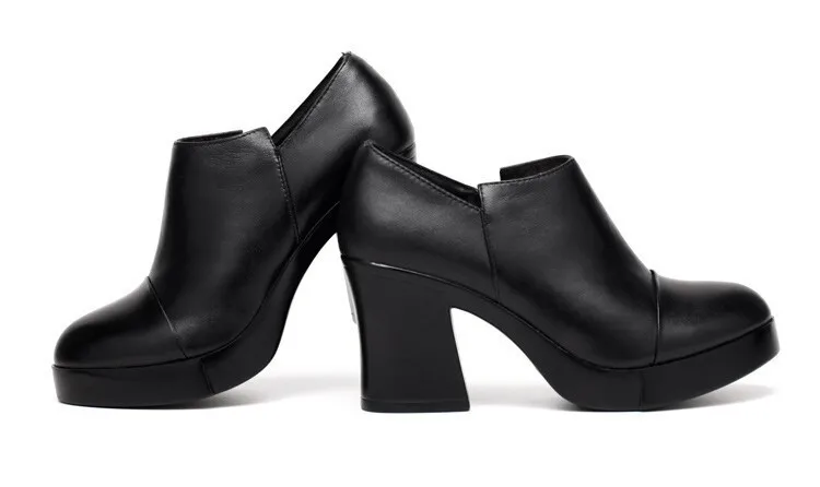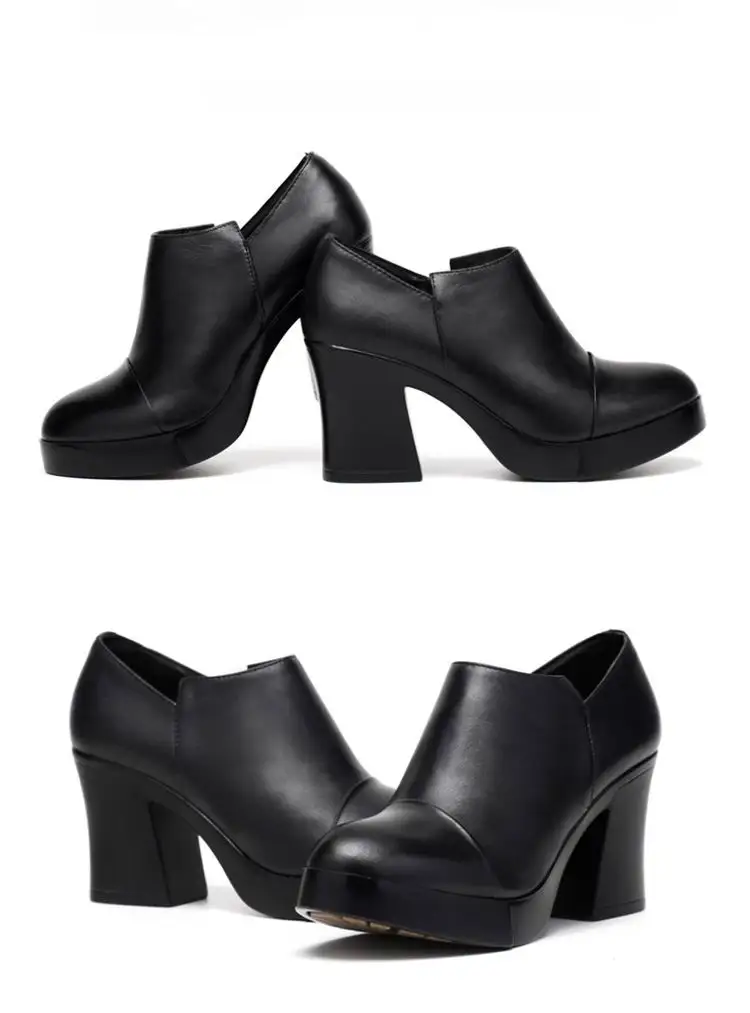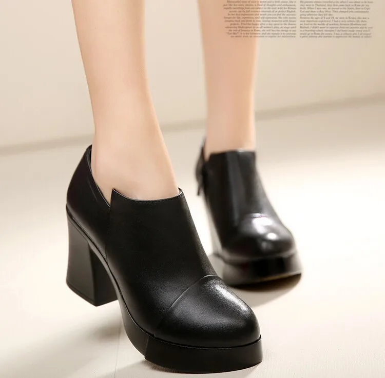 أحذية نسائية موضة خريف وشتاء 2023 بكعب عالي أحذية نسائية من الجلد الطبيعي الكورية الأولى من أحذية ذات نعل سميك