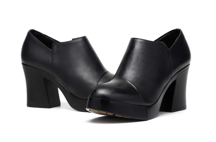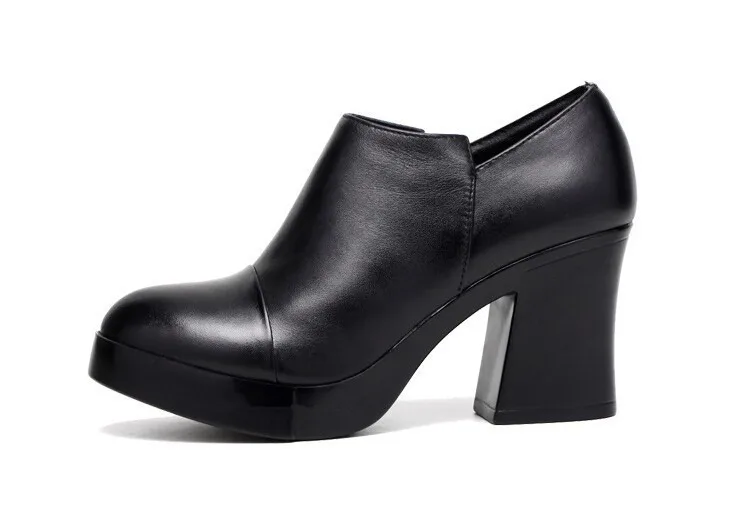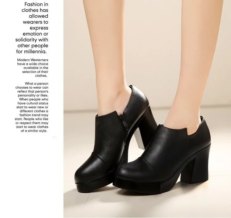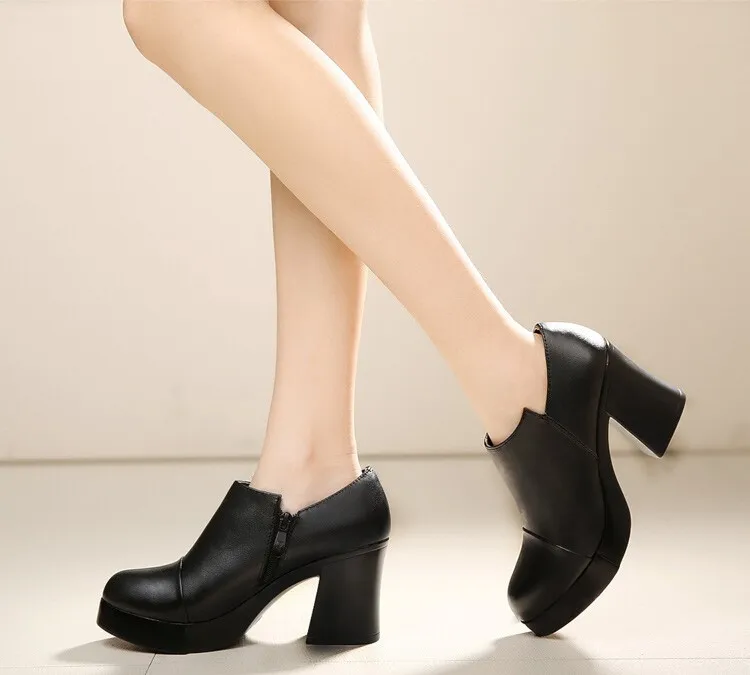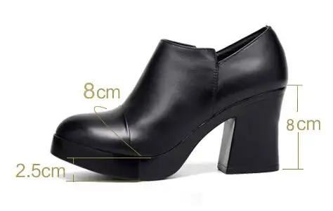 أحذية نسائية للربيع والخريف موضة 2023 بكعب عالي سميك أحذية نسائية من الجلد الطبيعي الطبقة الأولى من أحذية ذات نعل سميك
