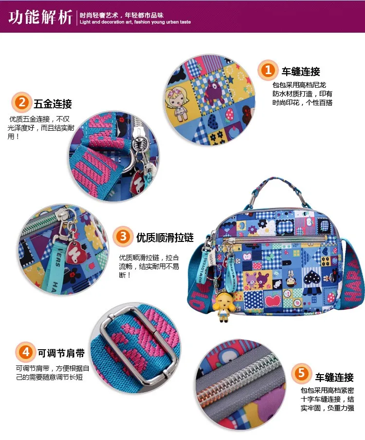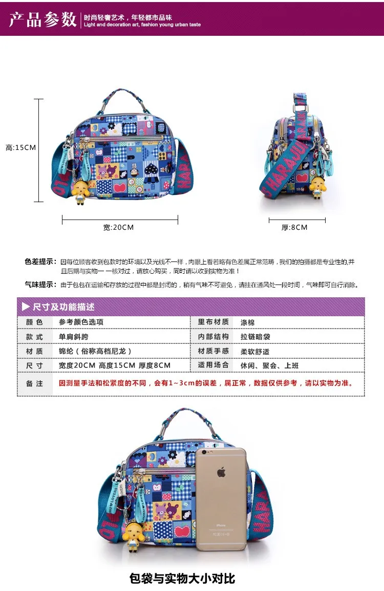 أزياء Harajuku- حقيبة يد نسائية ، حقيبة يد قماشية نايلون مقاومة للماء ، حقيبة كتف كروس عصرية