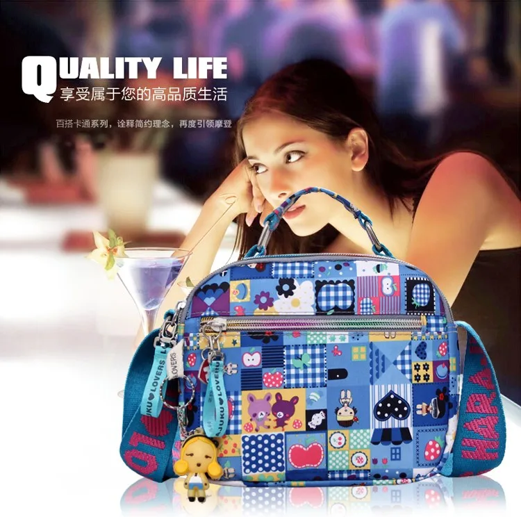 أزياء Harajuku-حقيبة يد نسائية ، حقيبة يد قماشية نايلون مقاومة للماء ، حقيبة كتف كروس عصرية