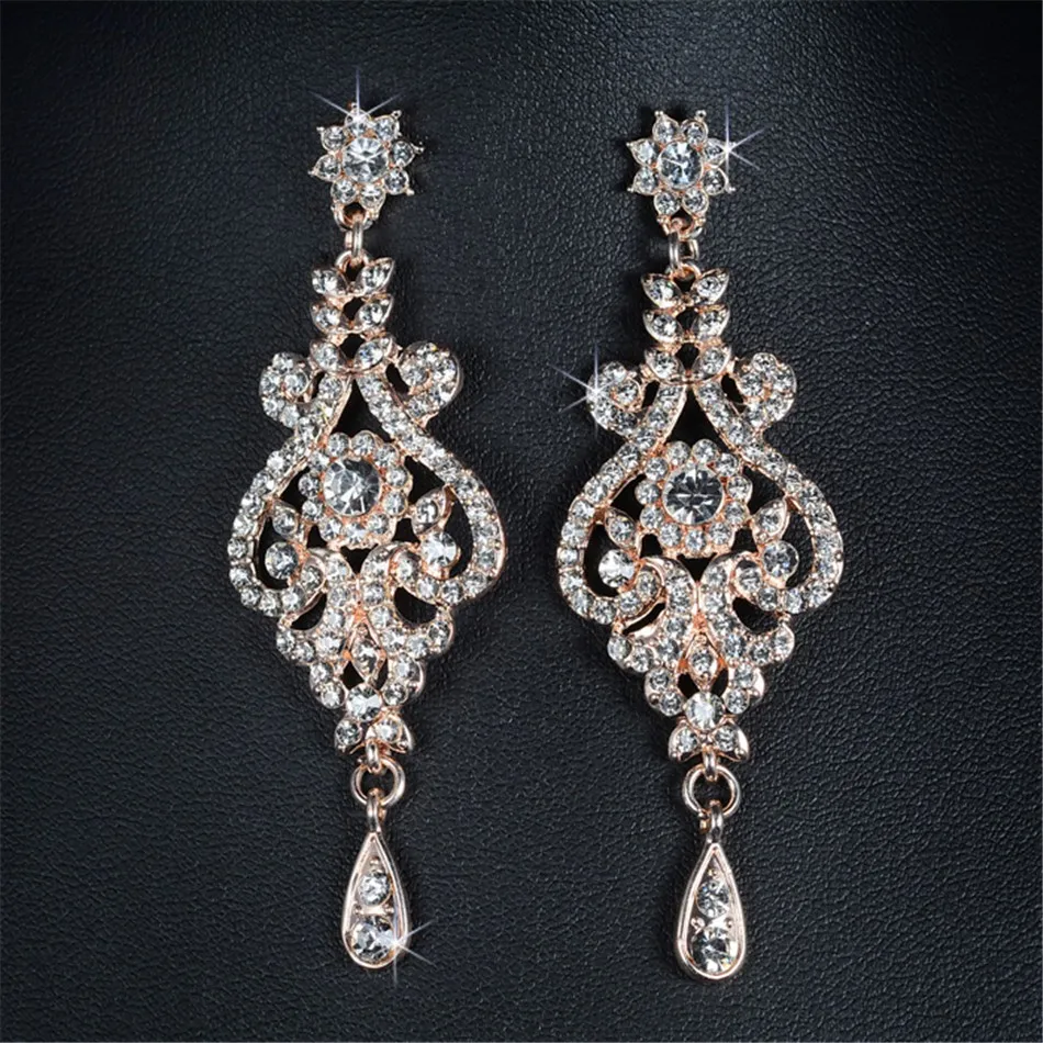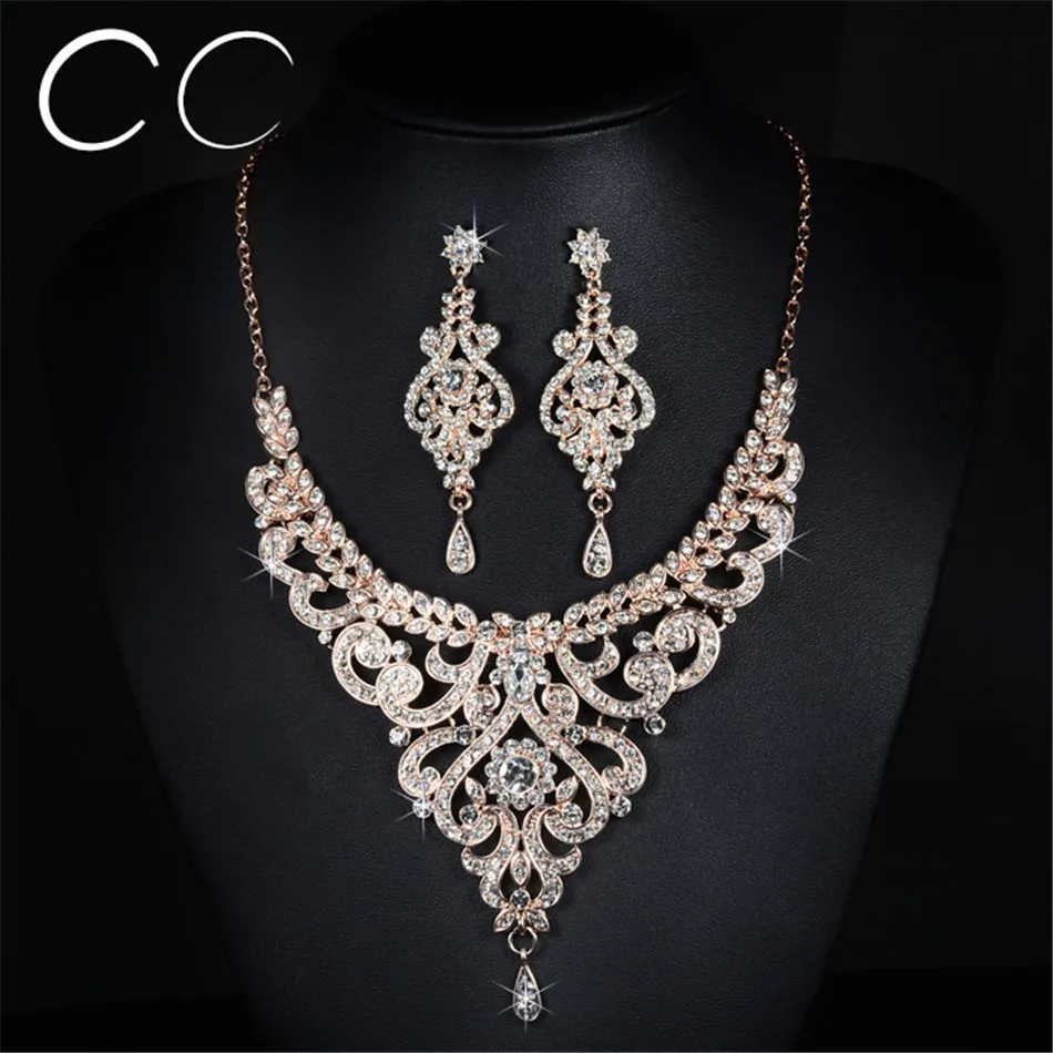 ارتفع الذهب اللون مجوهرات الزفاف مجموعات تشيكوسلوفاكيا قلادة كريستال نمساوي طقم أقراط فاخرة بيجو فام D020