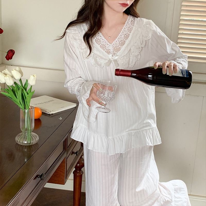 المرأة لوليتا بيجامة مجموعة الحلو مطرزة تتباعد من طول يتحول من السراويل الطويلة إلى السراويل الطويلة. ملابس النوم الفيكتوري المتسكعون