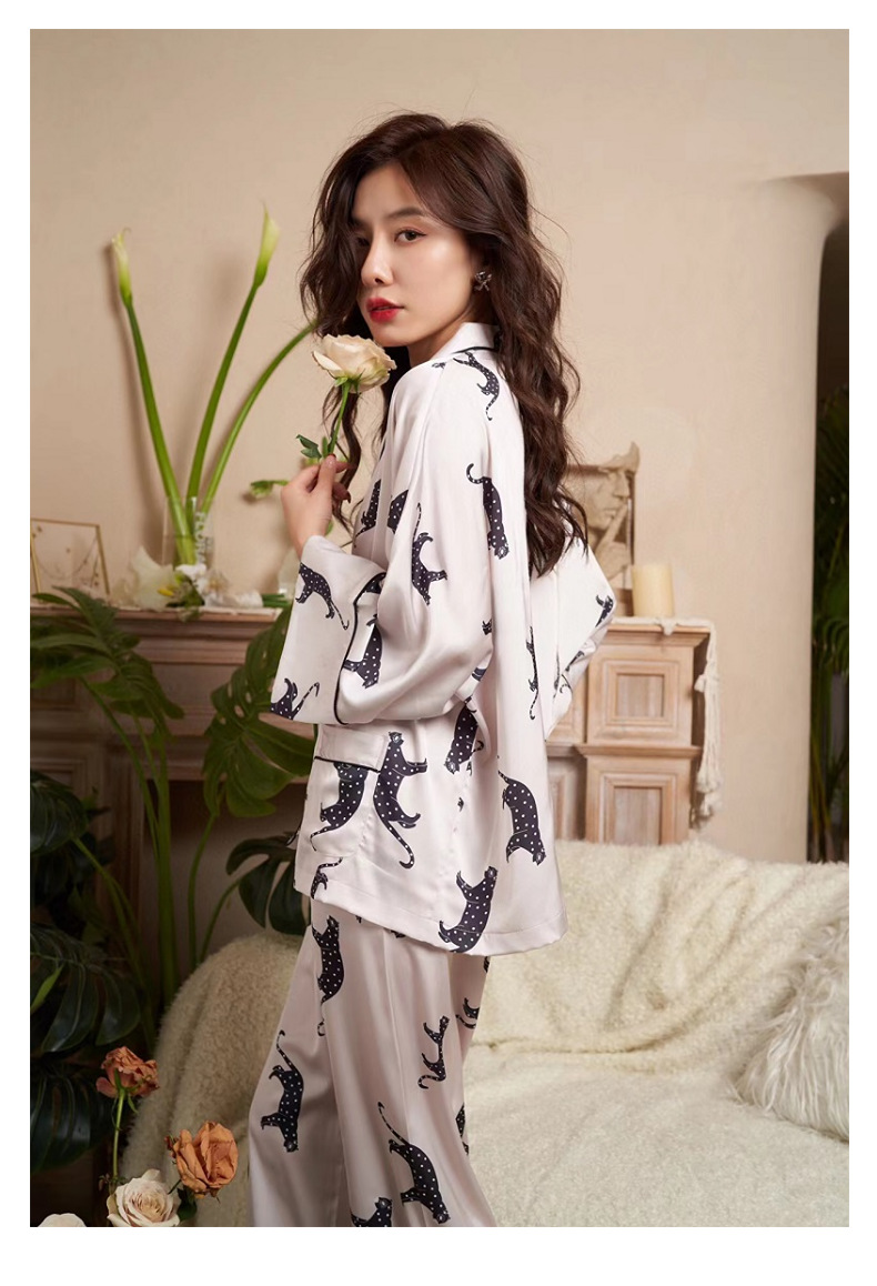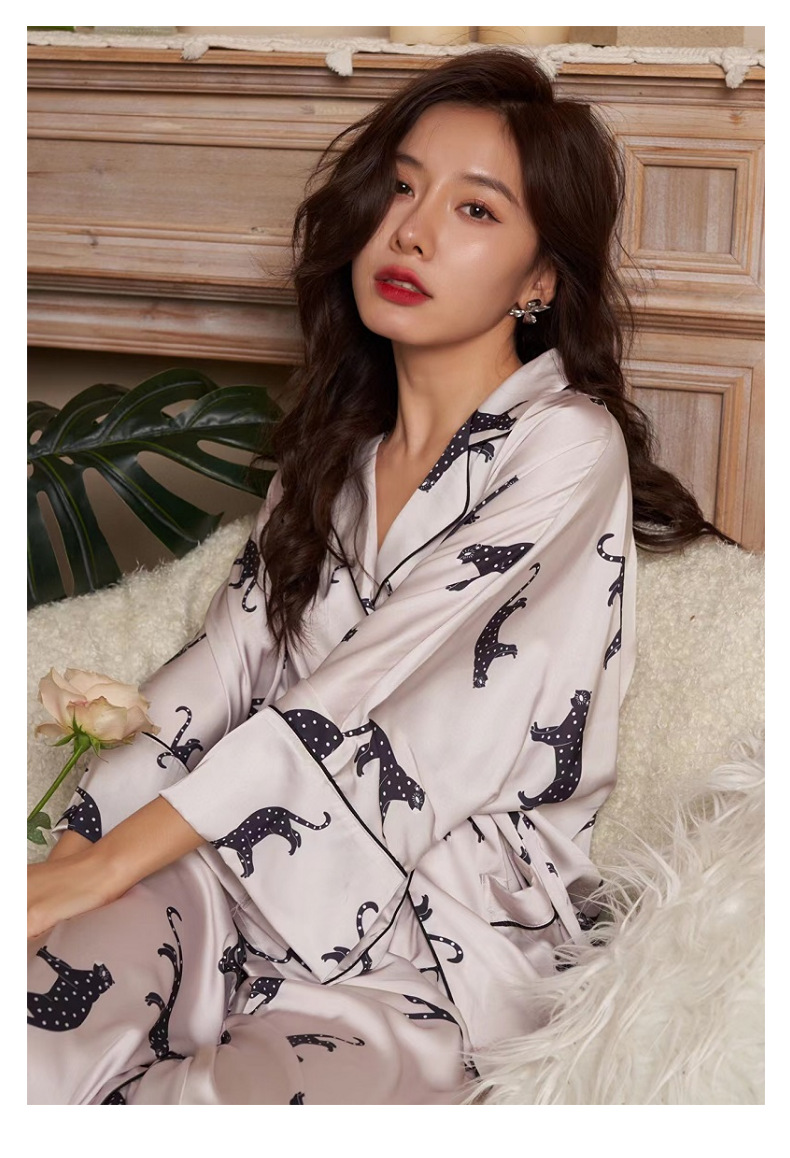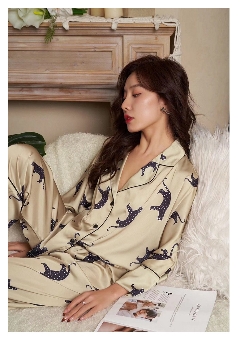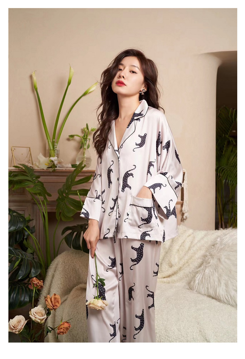 بيجامة من الساتان مجموعة الربيع الصيف المنزل دعوى مع بانت المرأة طباعة بيجامة دعوى الحرير بيجامة مجموعة ملابس خاصة للإناث بيجامة