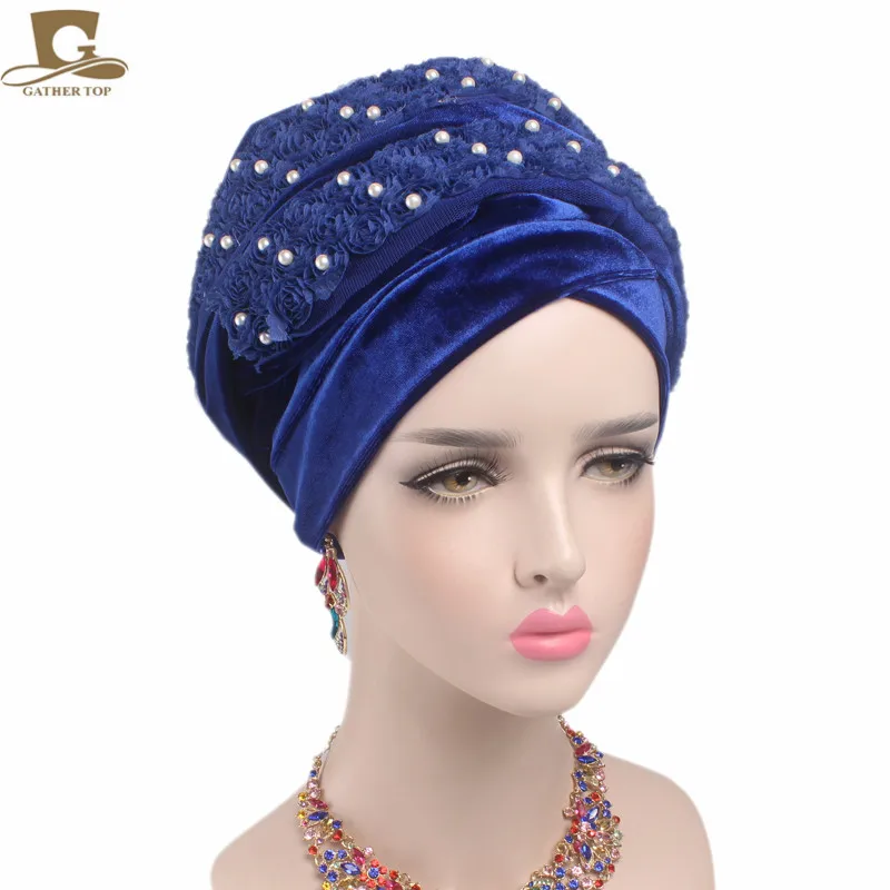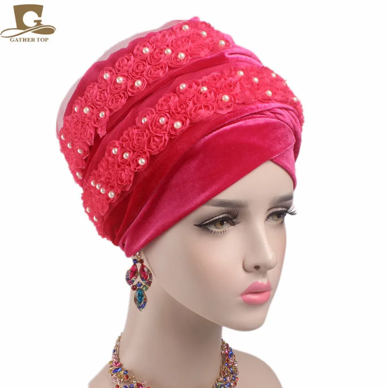 جديد الموضة الفاخرة ، النساء المخملية عمامة ، ثلاثية الأبعاد ، قماش هندي ، الدانتيل ، زيهور ، أرقام طويلة ، وشاح الرأس ، الحجاب