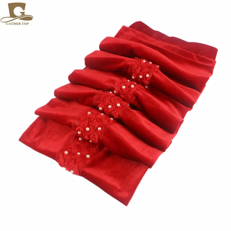 جديد الموضة الفاخرة النساء المخملية عمامة ثلاثية الأبعاد قماش هندي من الدانتيل مُطرز بالزهور اضافية طويلة أشرطة رأس الحجاب وشاح الرأس الحجاب