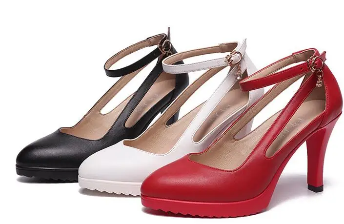 حجم 32-43 أشار تو كريستال منصة مضخات النساء 2022 حزام من الجلد الناعم الكاحل رقيقة عالية الكعب أحذية الزفاف العروس أبيض أحمر