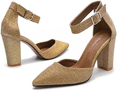حذاء نسائي من Enelauge بمقدمة مدببة بشريط كاحل عالي مكتنز بكعب عالٍ من الكعب العالي من الترتر الذهبي، 8. 5, ترتر ذهبي, 39 EU