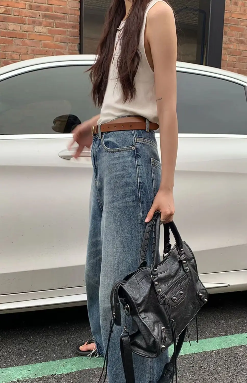 حقيبة كروس جلدية سوداء للنساء ، حقيبة يد مرصعة ، حقيبة كتف فاسق ، haraharajuku ، سعة كبيرة