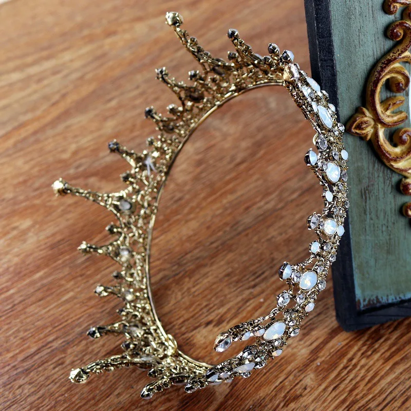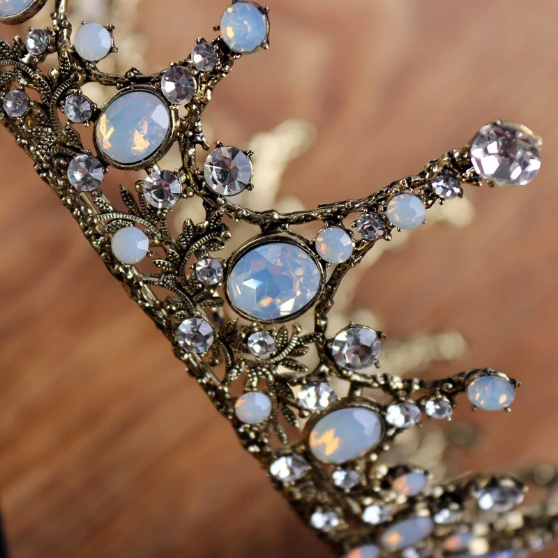 تاج أنيق عتيق باللون الأسود الباروك الأميرة الملك مستدير العروس تاج كبير للنساء مسابقة الزفاف حفلة موسيقية قطعة شعر الزفاف