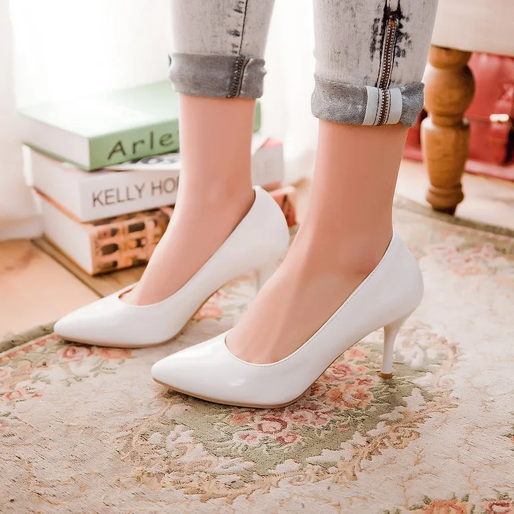 زائد كبيرة الحجم 34-47 أحذية امرأة 2017 جديد وصول الزفاف السيدات عالية الكعب الأزياء الحلو اللباس وأشار اصبع القدم النساء مضخات A-3