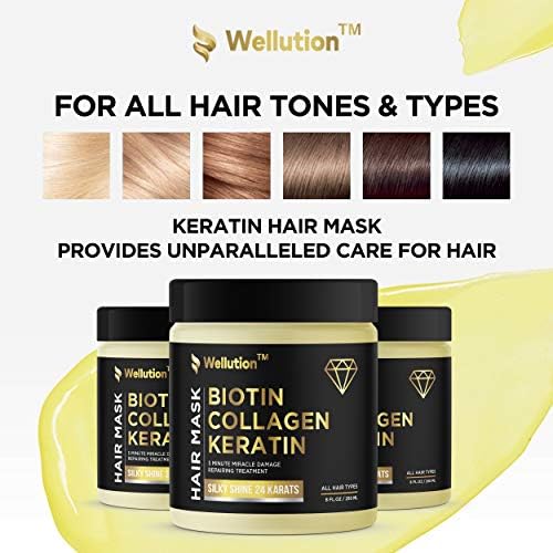 علاج كيراتين بيوتين كولاجين – صنع في الولايات المتحدة الأمريكية – علاج كيراتين طبيعي للشعر الجاف والتالف – قناع للشعر مع مركب فيتامين كولاجين للشعر من أجل أفضل إصلاح وتغذية للشعر – 8 أونصة
