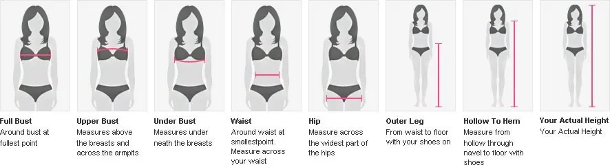 فستان ذو تصميم مثالي يبدأ بقياسات مثالية. قبل طلب فستان صنع لقياس جيئة وذهابا m DHgate.com ، ونحن نشجع بقوة على خياط محلي الذي يمكن أن تحصل على قياس بدقة. هنا ، كسبت قوة كسب المعركة بشكل صحيح. تحذير: قياس نفسك في المنزل أصعب مما تعتقد! للحصول على أفضل النتائج ، لديك دائما القياسات الخاصة بك التي اتخذتها خياط محلي محترف.