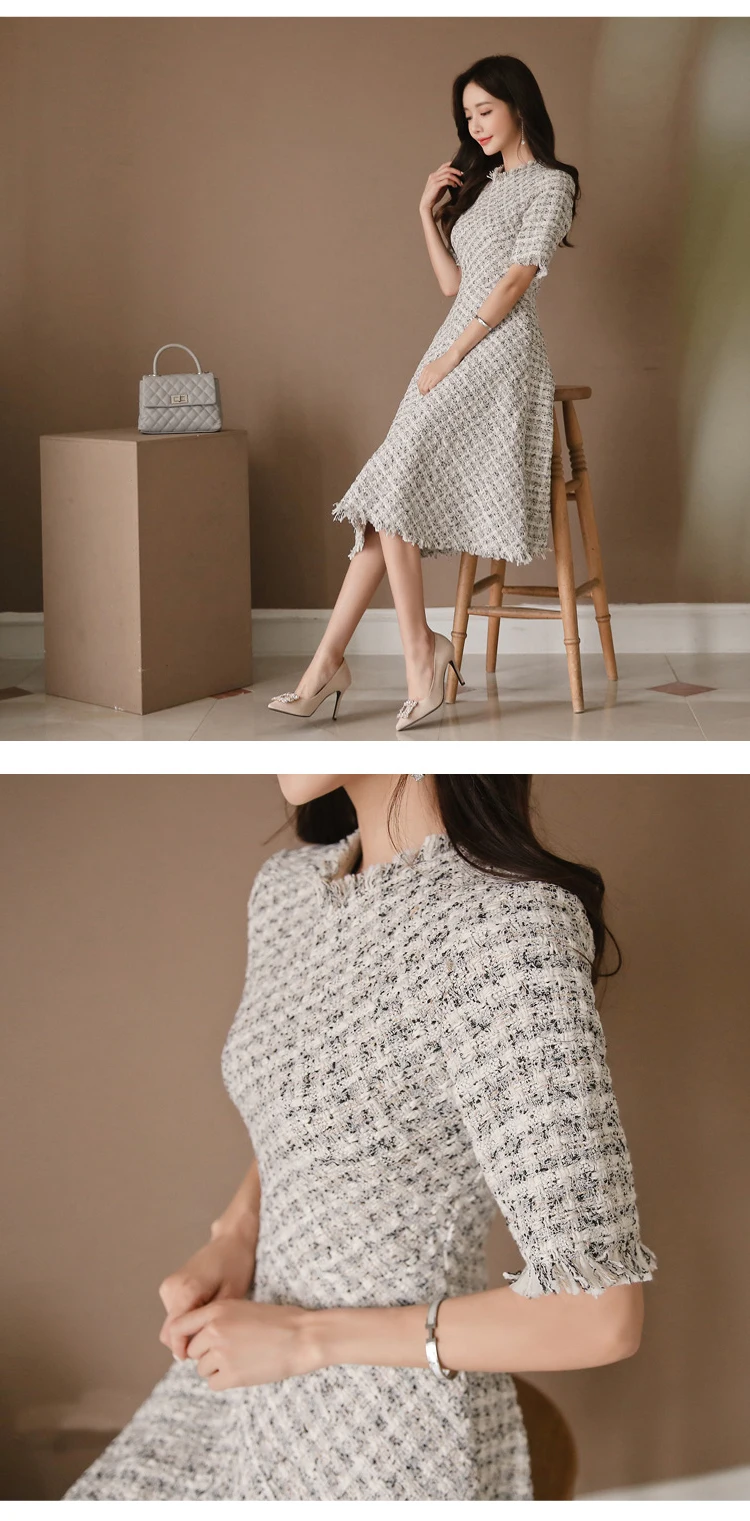 فستان أنيق كوري ميدي تويد نسائي فاخر غير رسمي فستان نسائي ضيق فساتين سيدات