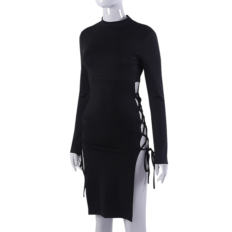 فستان نسائي مثير من Hirigin بلا أكمام ورقبة كاذبة رصع ضمادة جانبية عالية الشق ملابس نادي ليلي فساتين ليلية من Hirigin