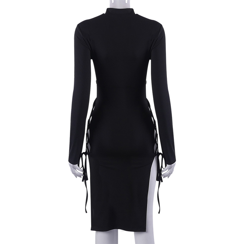 Hirigin المرأة فستان مثير للسيدات أنيقة بلا أكمام وهمية الرقبة رصع ضمادة الجانب عالية الشق انقطاع النادي الليلي DressesSkin-ودية