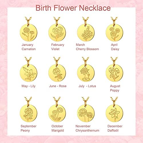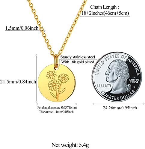 قلادة زهرة شهر الميلاد للنساء الفتيات أبريل ديزي الجارديان فلورا قلادة قرص 18 كيلو الذهب مطلي بالذهب ميدالية مجوهرات هدايا عيد الميلاد للأم، لا حجر كريم،, بدون أحجار كريمة