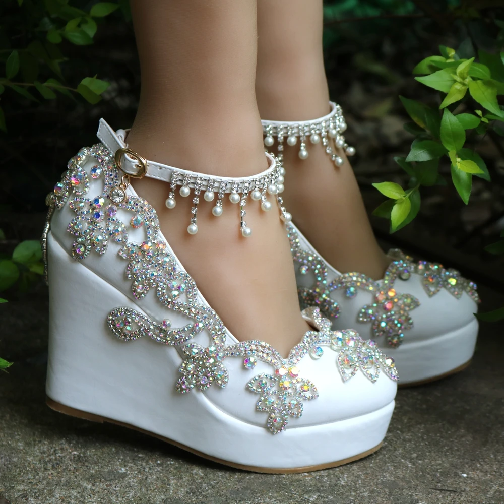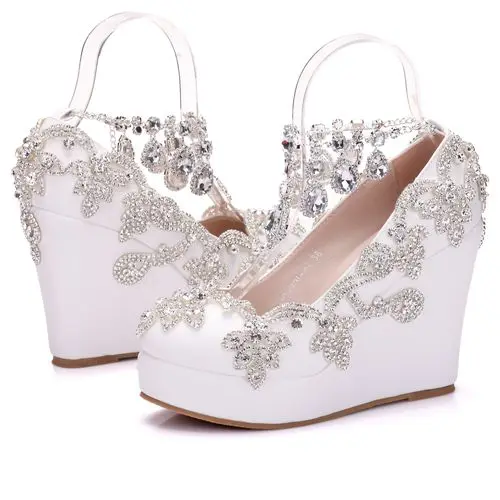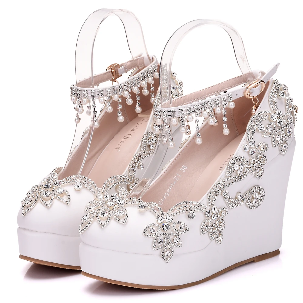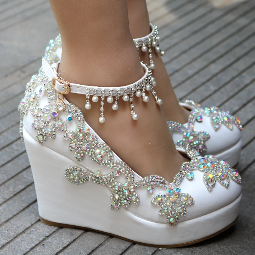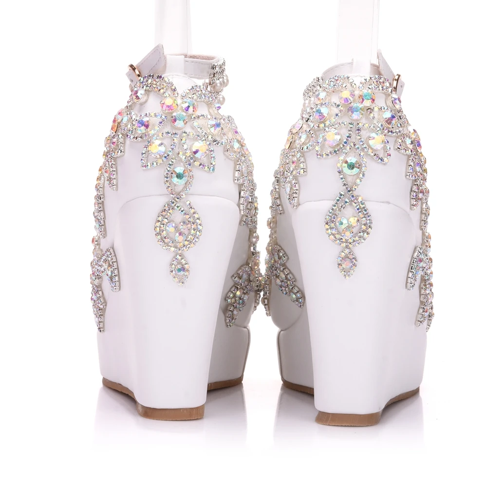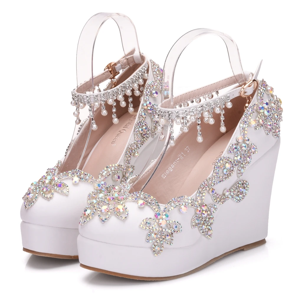 كريستال الملكة موضة جديدة الكريستال أسافين أحذية النساء الحلو منصة الزفاف كعب عالي