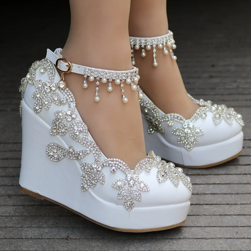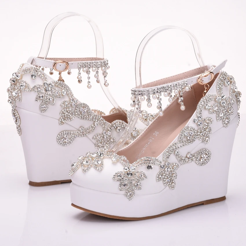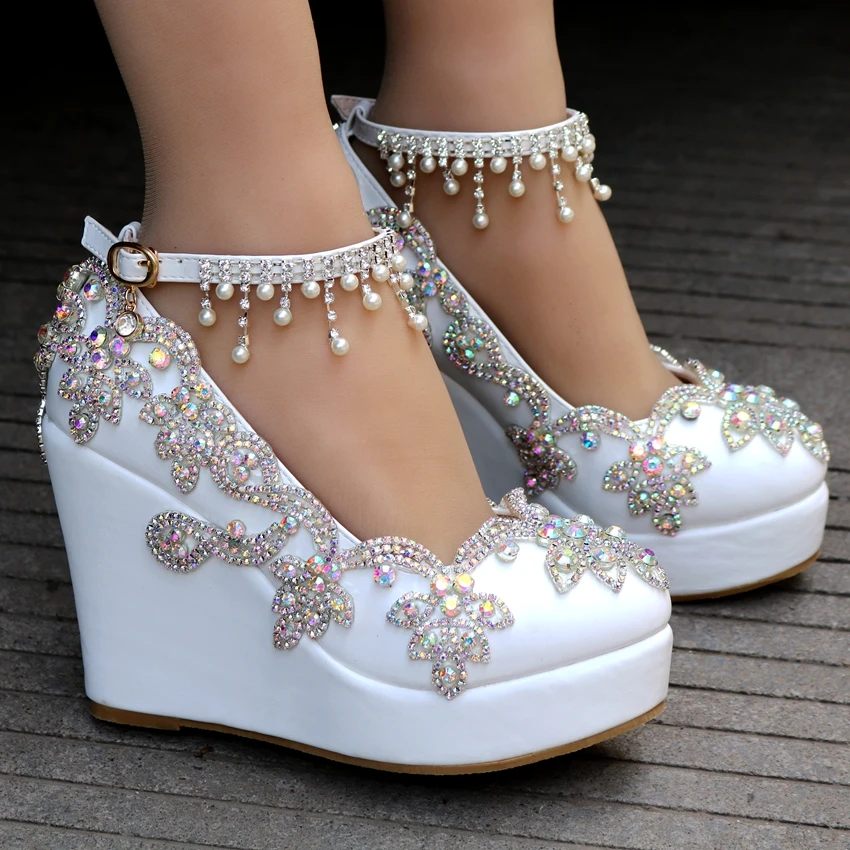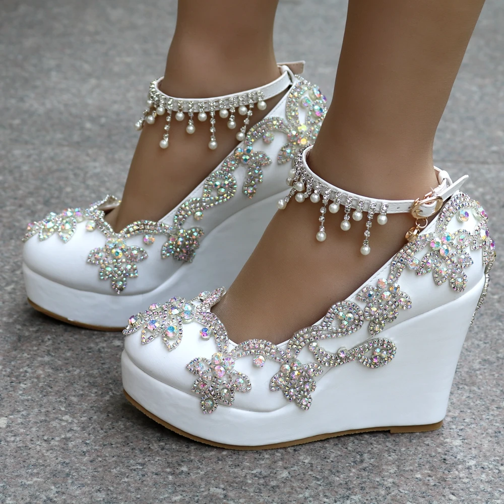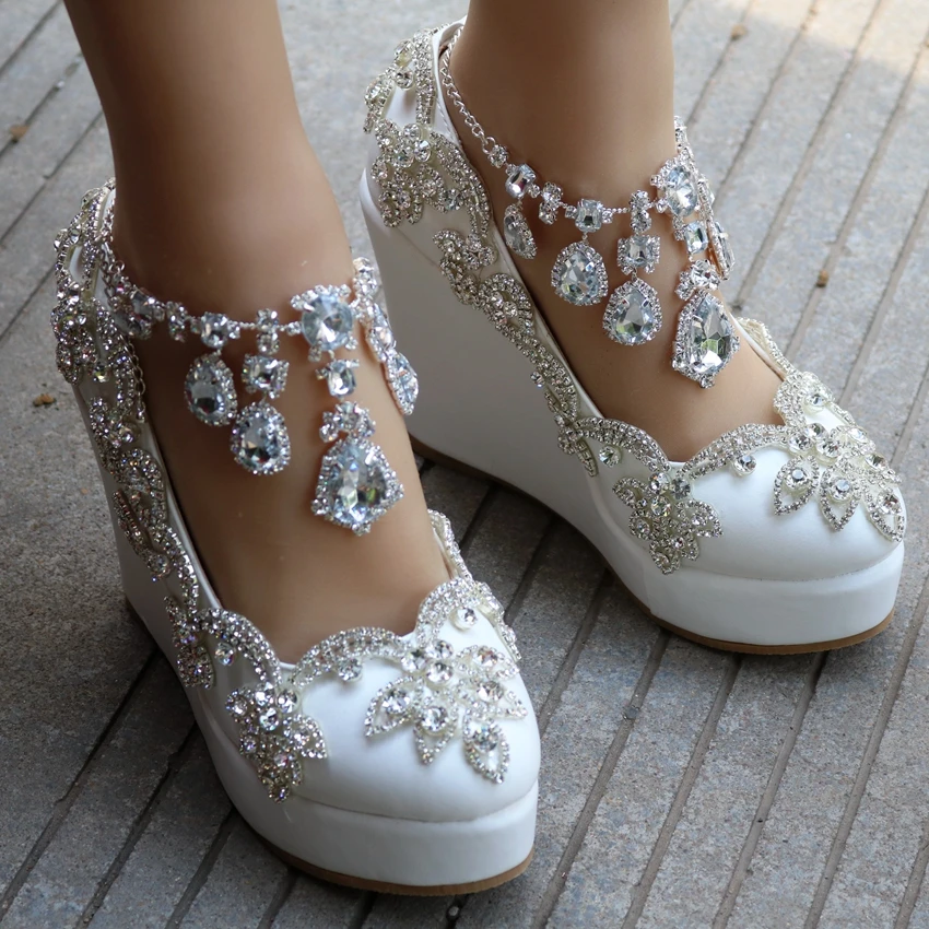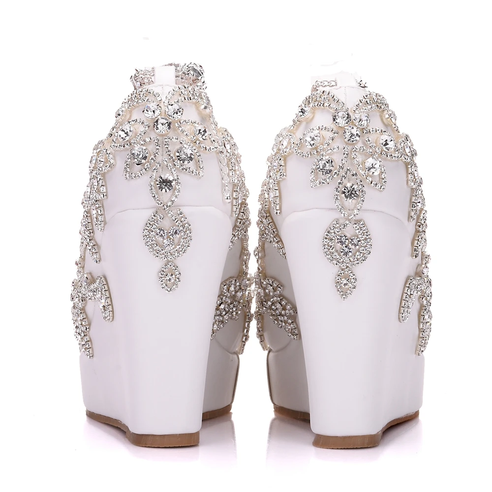 كريستال الملكة موضة جديدة الكريستال أسافين أحذية النساء الحلو منصة الزفاف كعب عالي