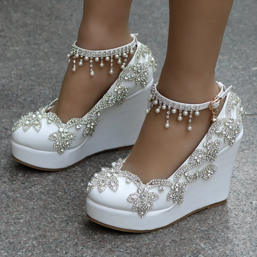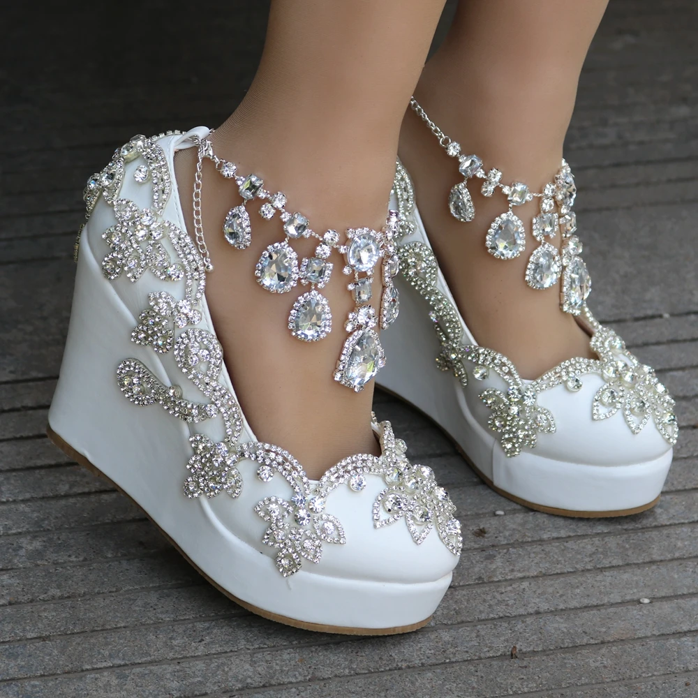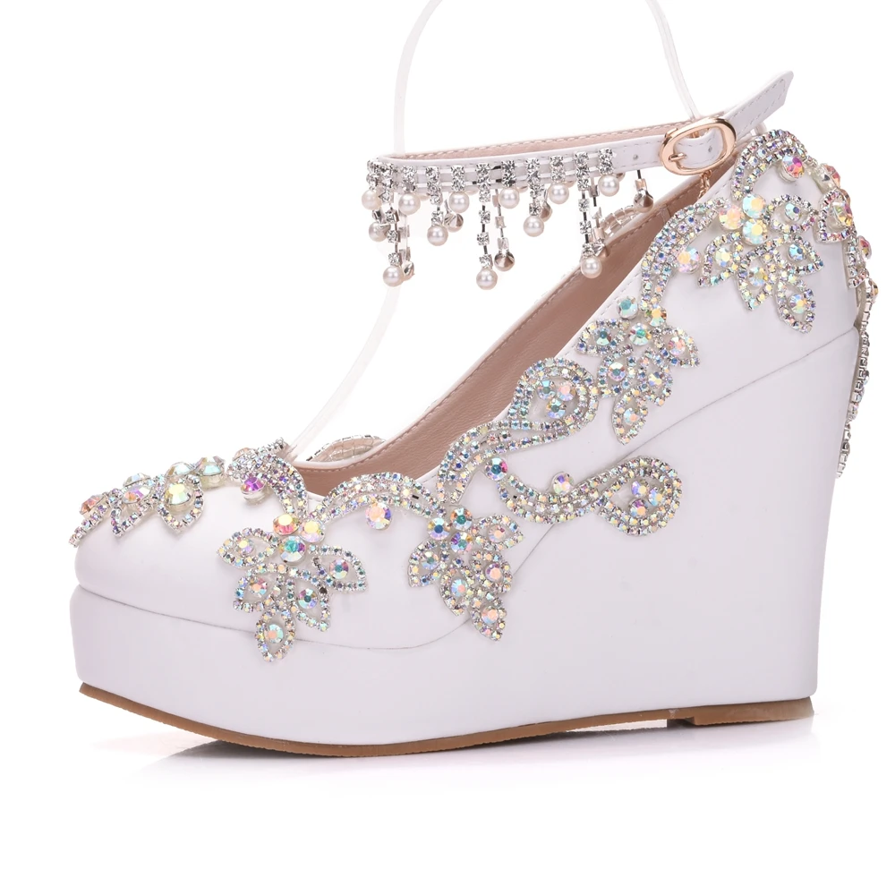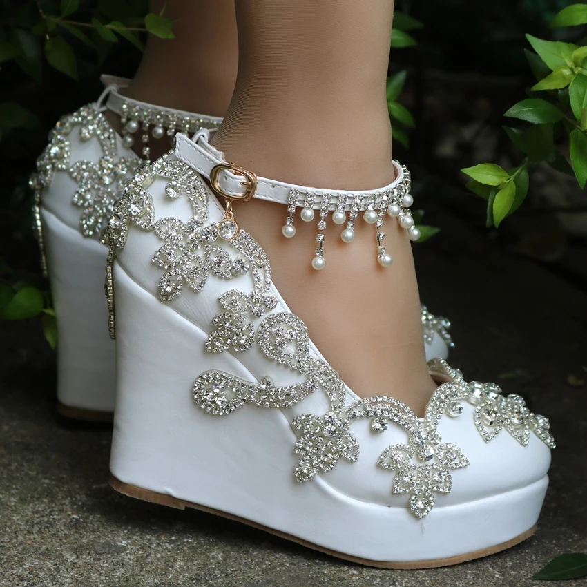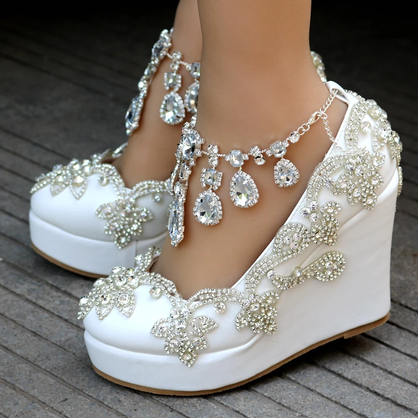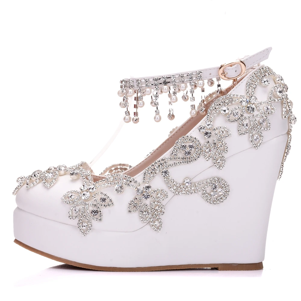 كريستال الملكة موضة جديدة الكريستال أسافين أحذية النساء الحلو منصة الزفاف كعب عالي