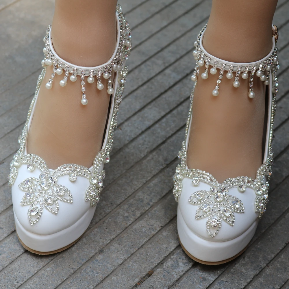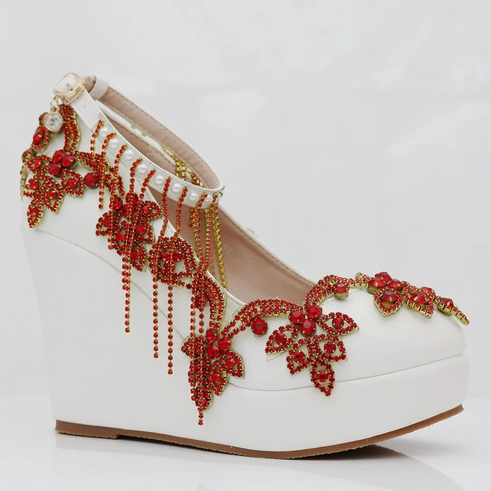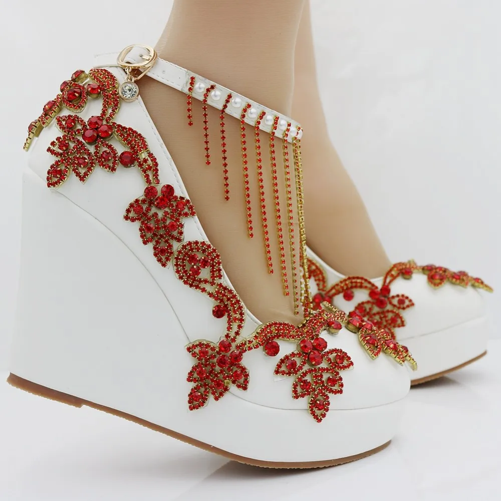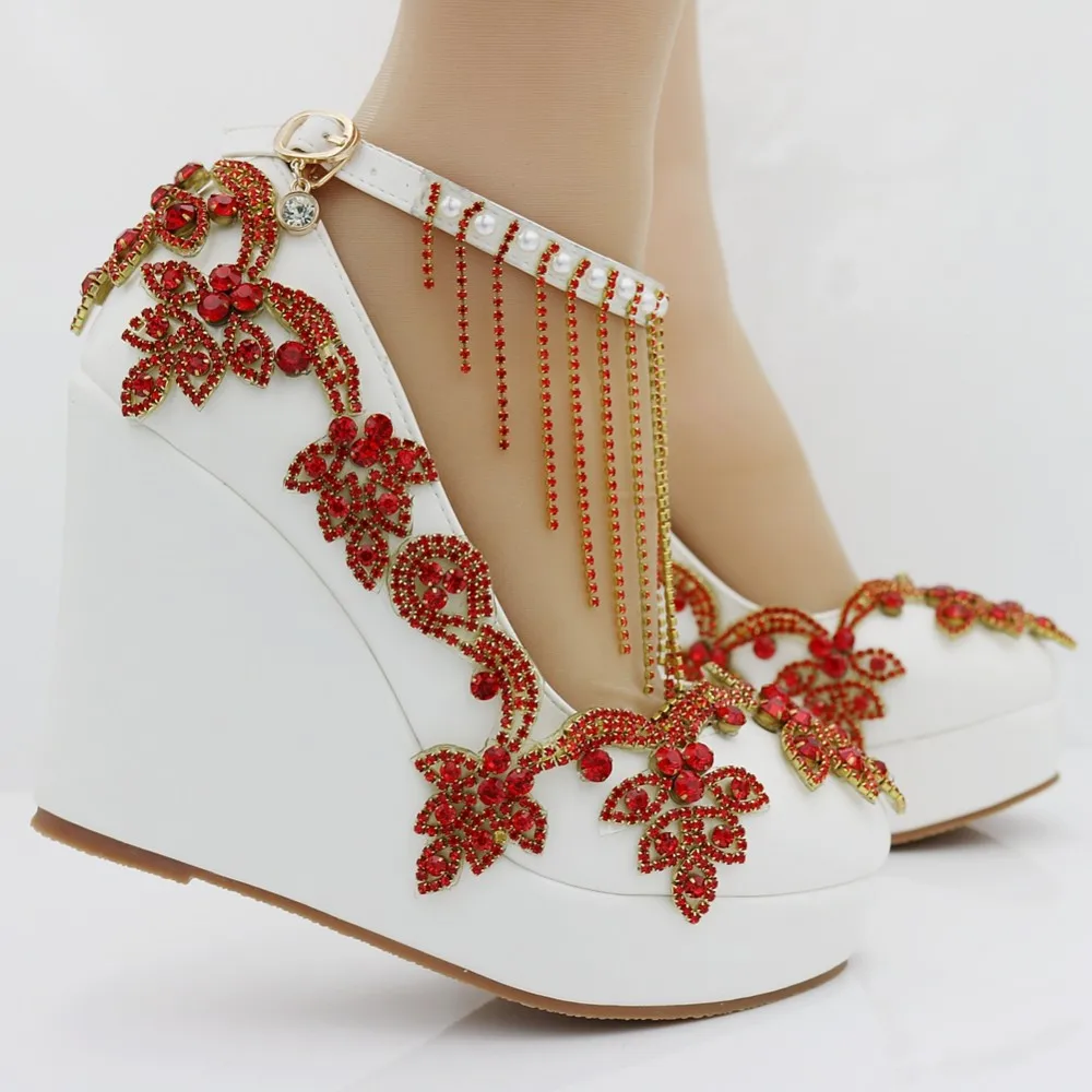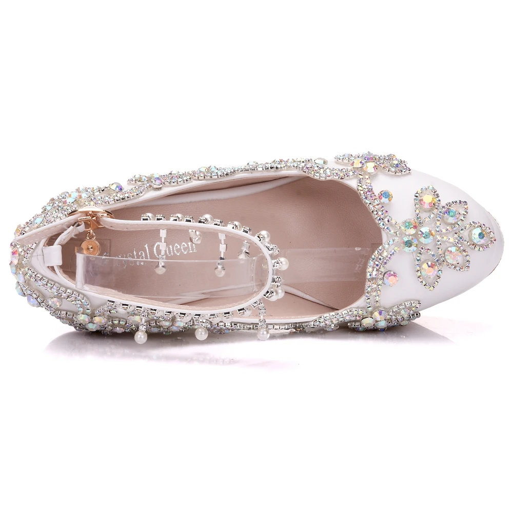 كريستال الملكة موضة جديدة الكريستال أسافين أحذية النساء الحلو منصة الزفاف كعب عالي