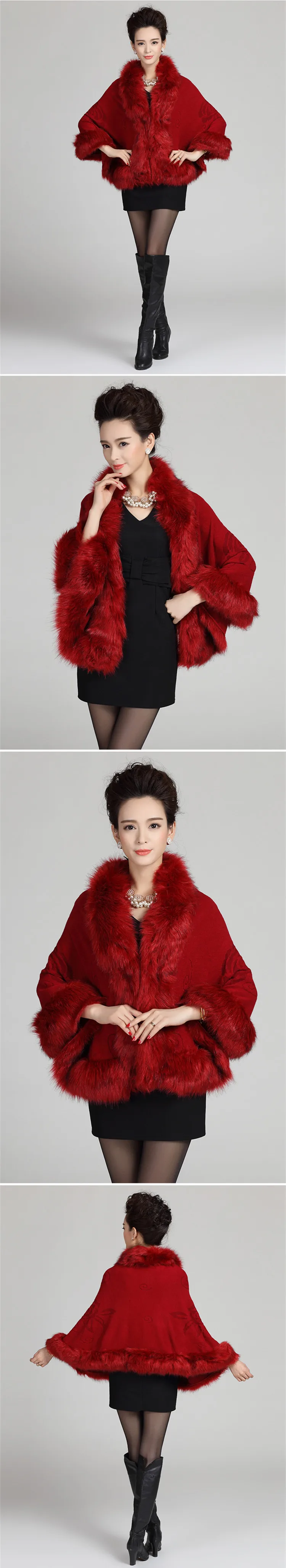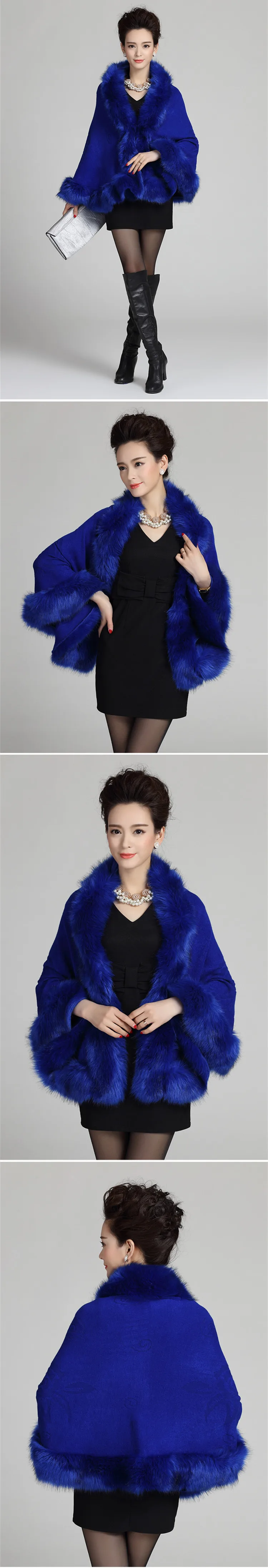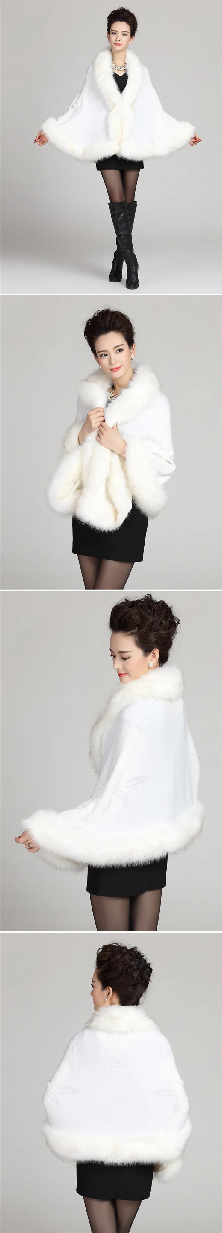 13 ألوان الخريف الشتاء النساء الأبيض فو الثعلب الفراء معطف كشمير عباءة لحفل الزفاف محبوك كبير الفراء طوق الزفاف شال خارج معطف