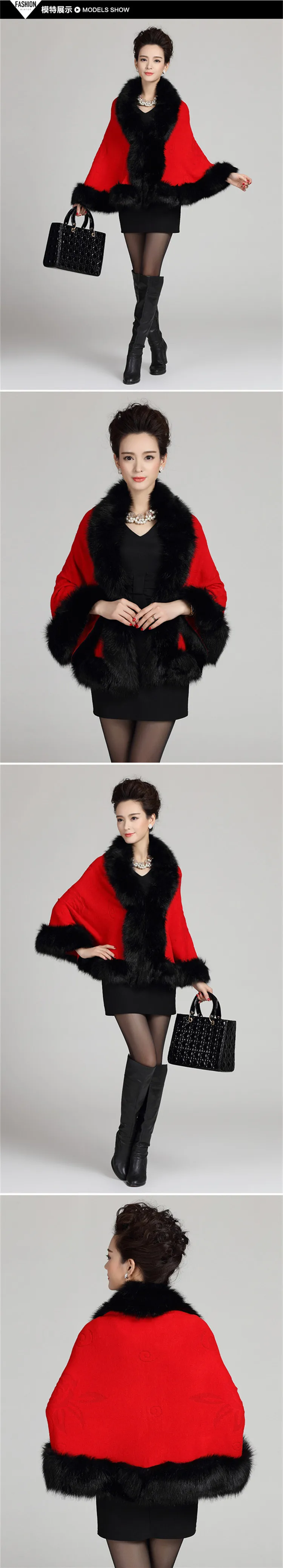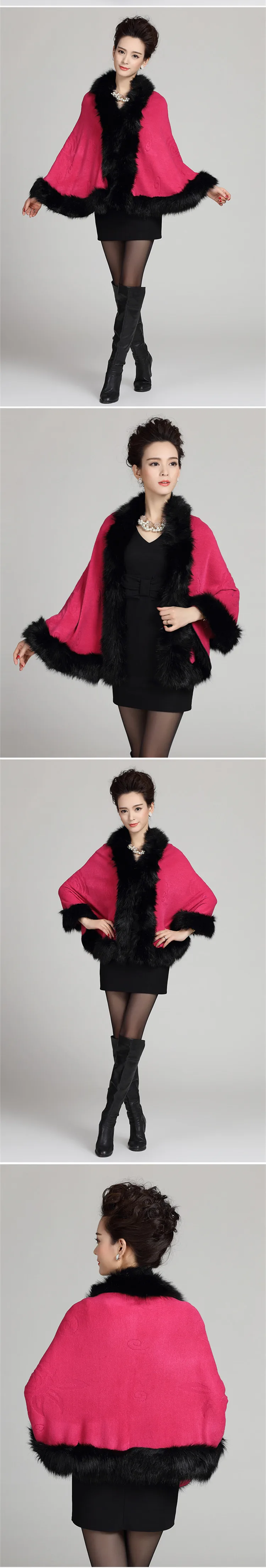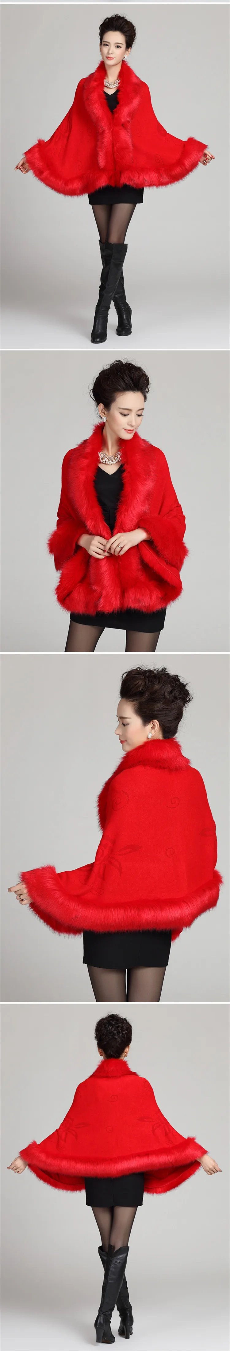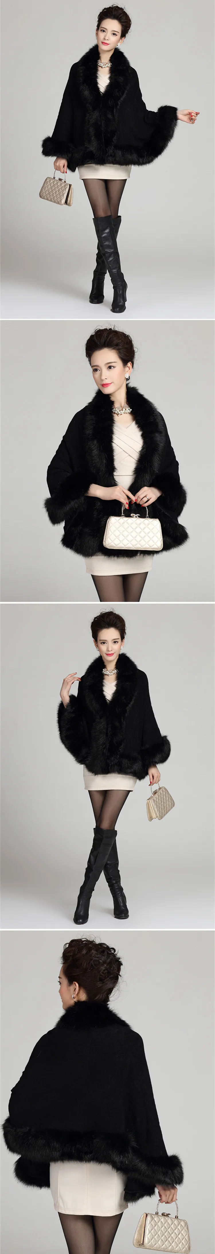 13 ألوان الخريف الشتاء النساء الأبيض فو الثعلب الفراء معطف كشمير عباءة لحفل الزفاف محبوك كبير الفراء طوق الزفاف شال خارج معطف