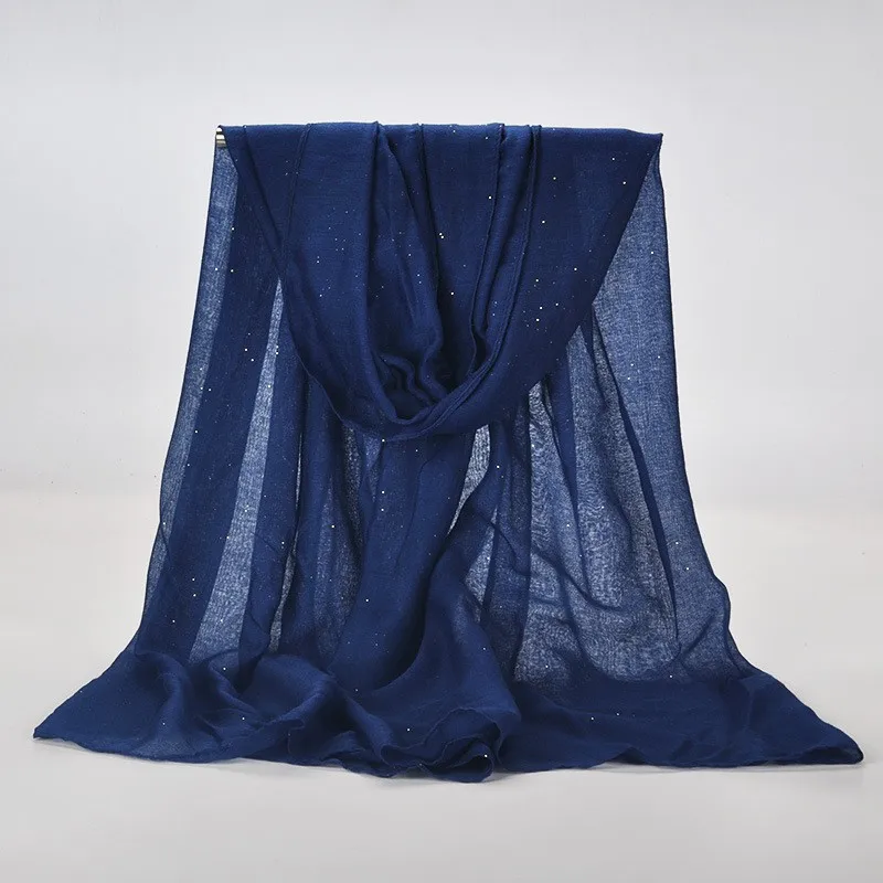 20 لون 2021 جديد الشتاء النساء أسود البحرية بلون مسلم الحجاب لامع بريق وشاح التفاف الإناث 90 سنتيمتر * 180 سنتيمتر