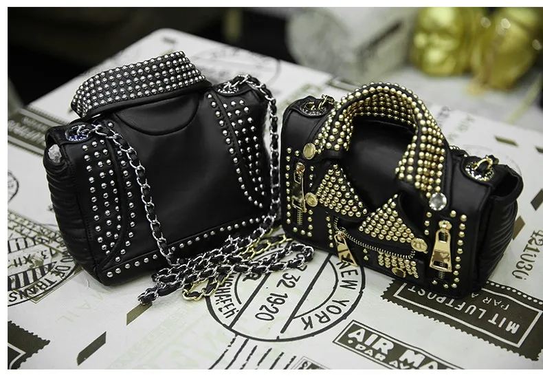 Ameiliyar المصممين النساء حقائب جلدية الحرف اليدوية برشام سترة الشرير نمط حقيبة ساع حقيبة الكتف Crossbody الذهب والفضة