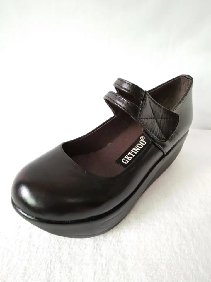 GKTINOO النساء حقيقية أحذية من الجلد عارضة حذاء بكعب ويدج الكاحل الأشرطة الضحلة الفم الأحذية منصة لينة وحيد للسيدات سوينغ أحذية