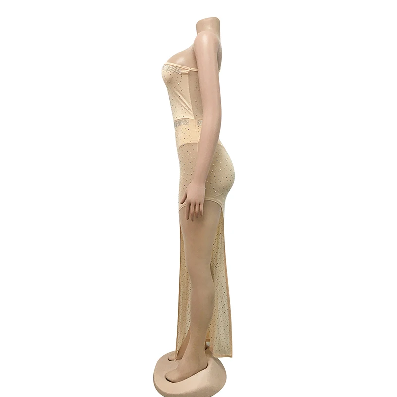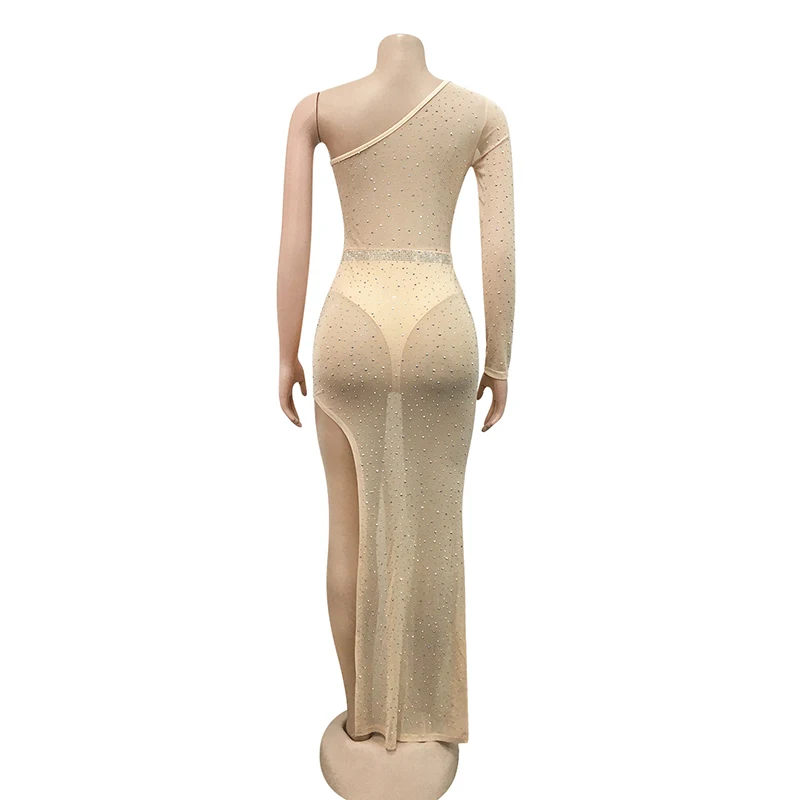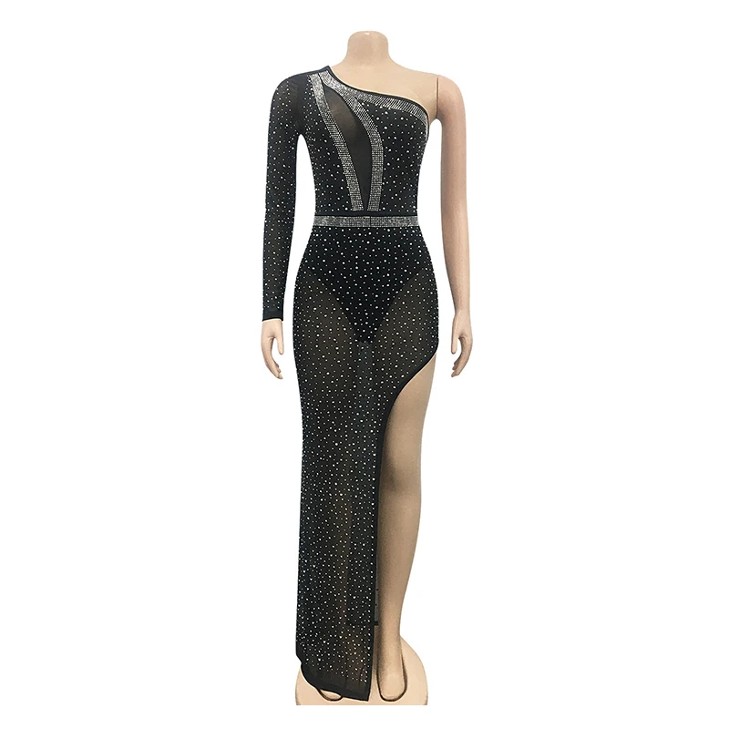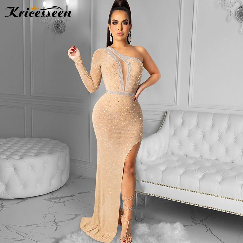 Kricessee مثير عارية عارية كم واحد ارتداءها فستان ماكسي المرأة كم طويل واحد الظهر Bodycon كلوبوير فستان طويل
