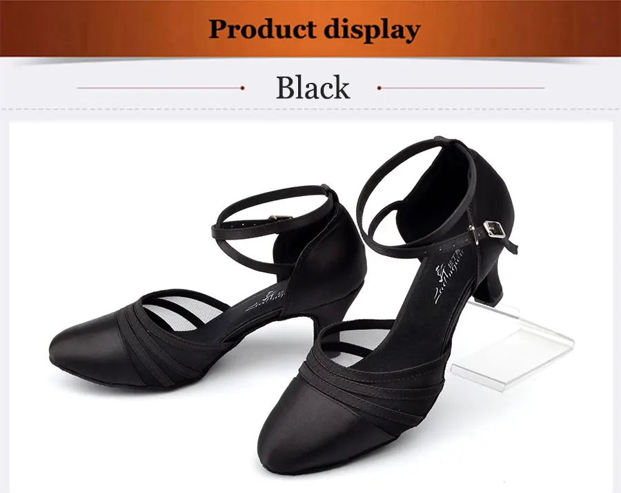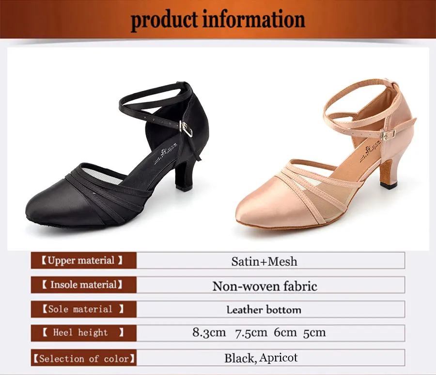 Ladingwu-أحذية رقص لاتينية نسائية ، ساتان وشبكة ، مشمش/أسود ، مسابقة رقص ، مغلقة من الأمام