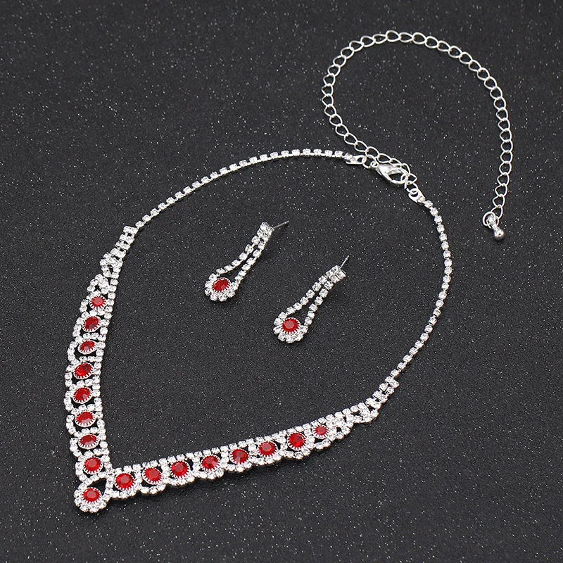 TREAZY- طقم مجوهرات مرصع بأحجار الكريستال والكريستال الأحمر للنساء ، طقم عقد وأقراط وسوار ، أنيق