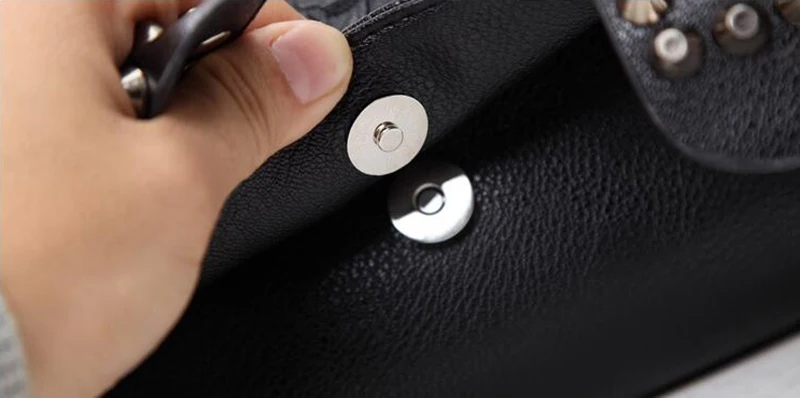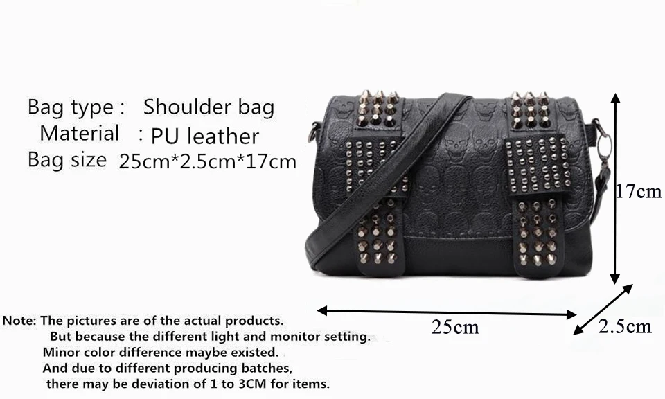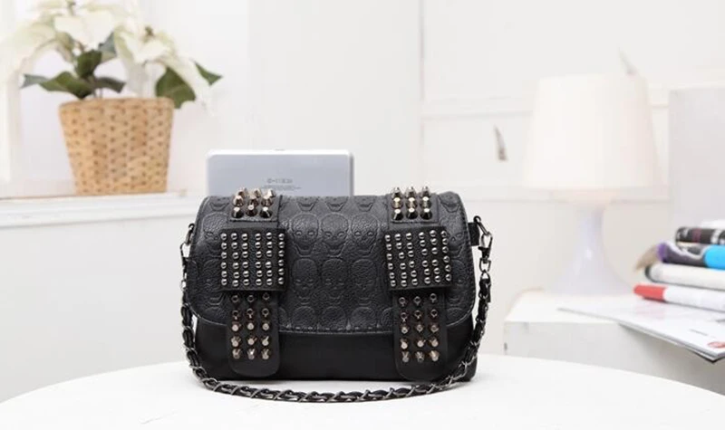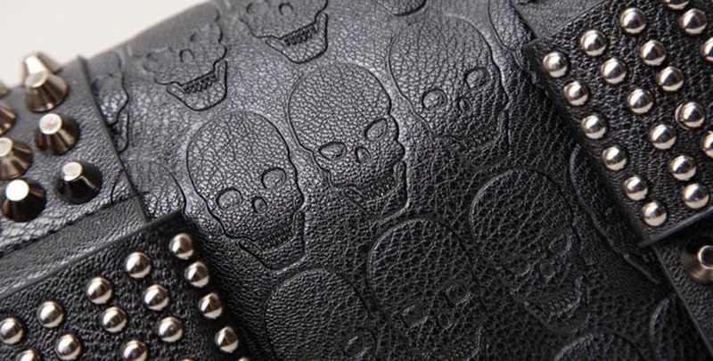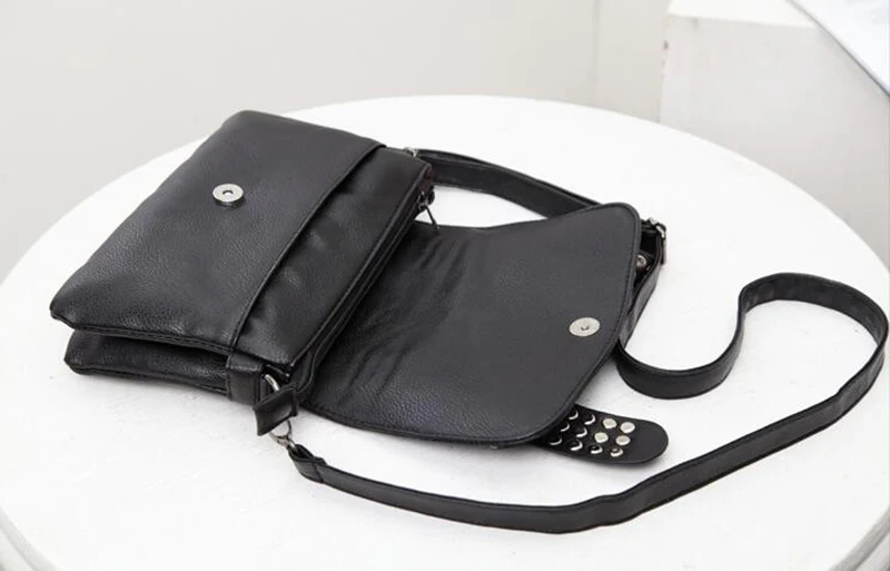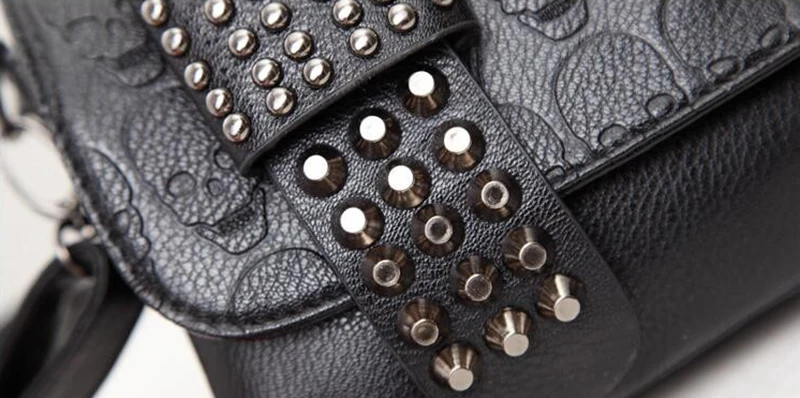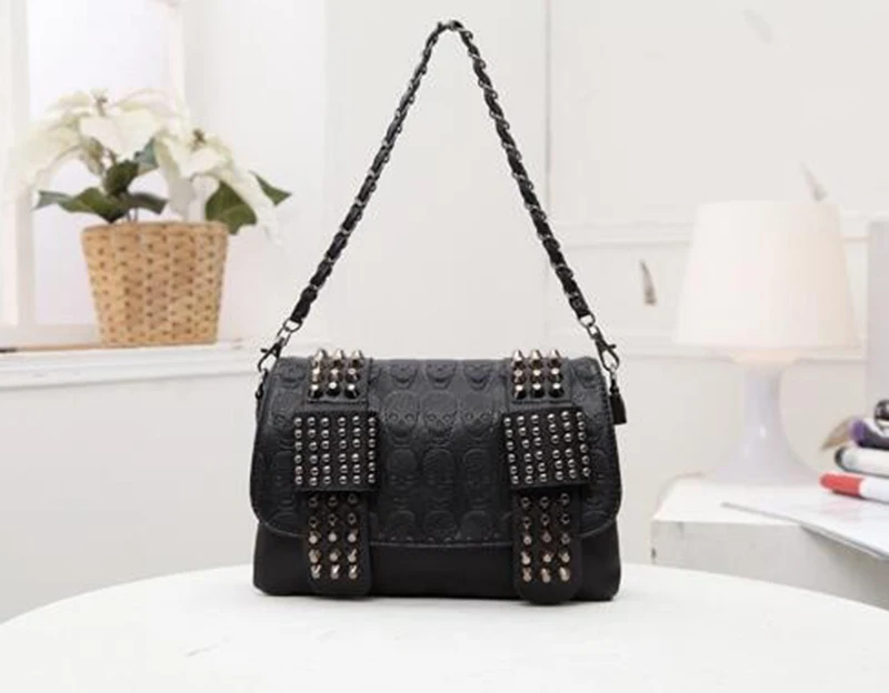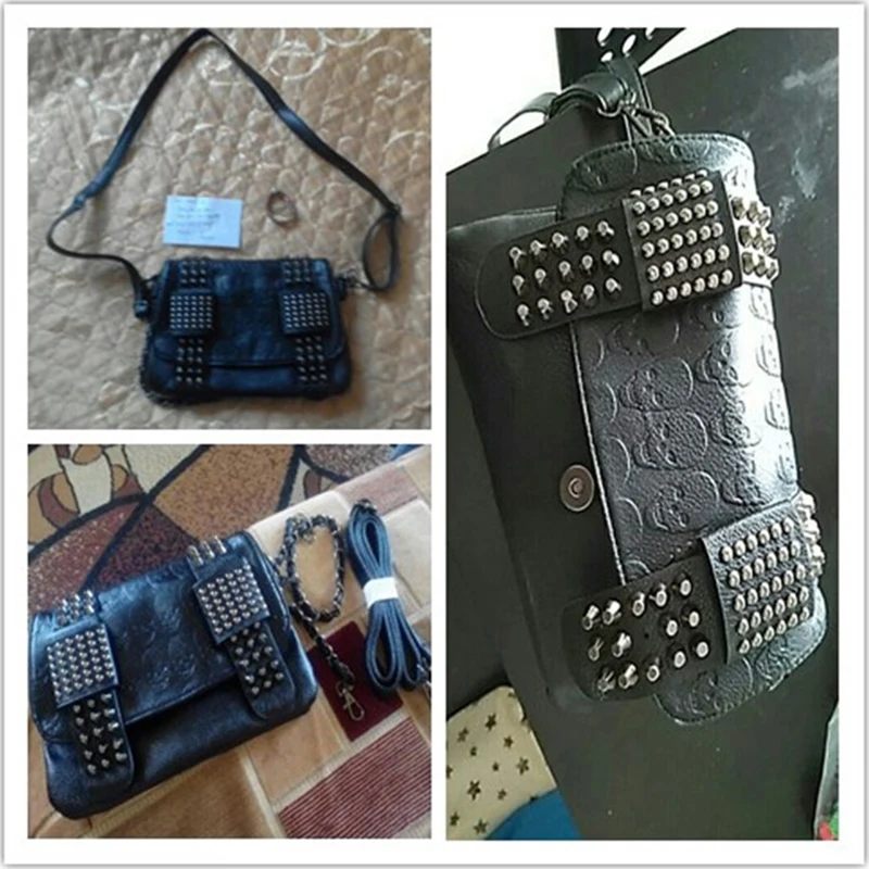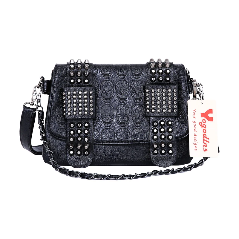 Yogodlns-أسود حقائب جلدية رسول للنساء ، والأزياء كلاسيكي ، الجمجمة باردة ، المسامير حقائب الكتف ، كيس