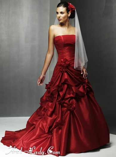 وفيما يلى استعراض بسيط لبعض موديلات فساتين السهرة أو الخطوبة الحمراء،