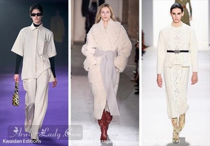 وقد يغلب الريش على اللون الأبيض والبيج في أزياء شتاء ٢٠٢٠ للسيدات أصحاب الذوق الهادئ والناعم.