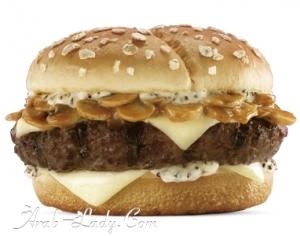 -ضعي القليل من الزيت في طاسة على النار .. قومي بتسوية البرجر على الواجهين حتى قرب النضج .. ضعي مقدار من الجبنة وبعض شرائح المشروم كحشو على واحدة وغطيها بقطعة برجر أخرى.