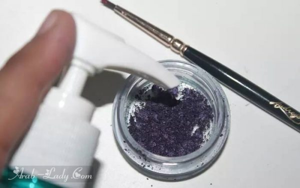 - اغسلي يدك جيداً وعقميها، ثم حولي مسحوق الايشادو إلى آيلاينر ملون بالطريقة التالية.