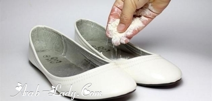3- بودرة التلك:قومي برشها فى الحذاء قبل ارتدائه صباحاً، وستلاحظين الفرق مع الاستخدام المتكرر وتقليل رائحة القدم.
