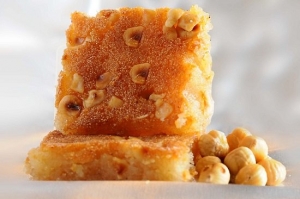 قومي بتذويب عسل الجلوكوز فى اللبن الدافئ، واخلطيهم يدوياً مع السكر والسمنة بدرجة حرارة المطبخ حتى يذوب السكر وحتى تمام التجانس.اخلطى السيمولينا او السميد مع جوز الهند والفانيليا، وضيفيهم لخليط السوائل واعجنى حتى تحصلى على عجينة متماسكة ومرملة و متوسطة القوام.قومي بدهن صينية الفرن بالسمن جيداً ووزعى فيها الخليط بالتساوى ثم بللى يدك بالماء وساوى السطح ووزعى المكسرات واضغطى عليها بخفة وغطيها واتركيها بالمطبخ لمدة ربع ساعة . حضري السيرب الثقيل عن طريق :وضع كوبين سكر مع كوب ماءعلى النار دون أى تقليب، وبعد الغليان ضيفى عصير نصف ليمونة وملعقة واحدة صغيرة فانيليا اخفضي النار واتركيه يغلى لمدة لا تقل عن 8 دقائق، وادخليها الفرن الساخن على 180 لمدة نصف ساعة.وعندما تخرج الهريسة من الفرن تسقى وهى ساخنة فور خروجها بالسيرب الثقيل الدافئ الأميل إلى السخونة وتغطى وترجع إلى الفرن الساخن بعد غلق ناره لمدة 7دقائق، وتهدأ وتقطع و تقدم.