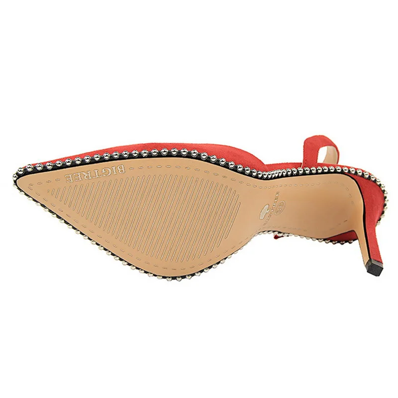 BIGTREE أحذية برشام عالية الكعب امرأة مضخات بولي Leather جلد النساء الكعوب 9 سنتيمتر أحذية الحفلات مثير أسود أحمر المشمش أحذية الزفاف الإناث
