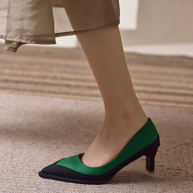 عالية الكعب النساء 2022 الصيف جديد كعب سميك أشار تو أحذية أحذية النساء حجم كبير 34-43 مختلط الألوان أحذية مثير أحذية الزفاف