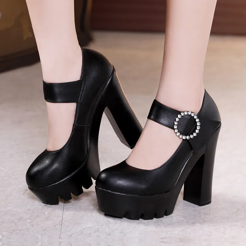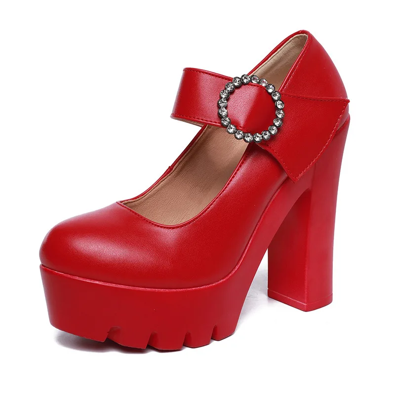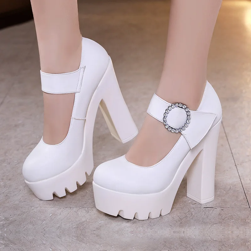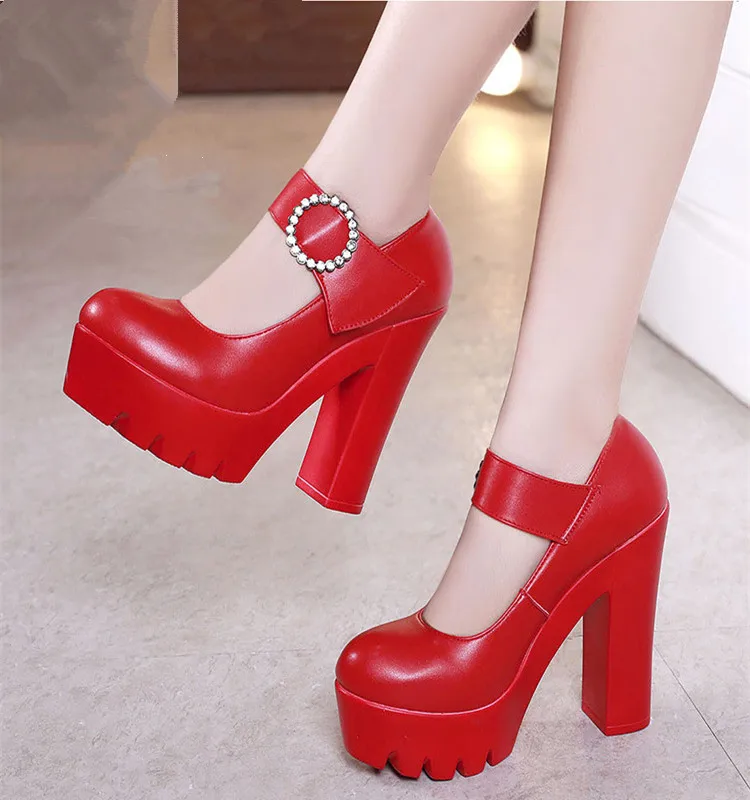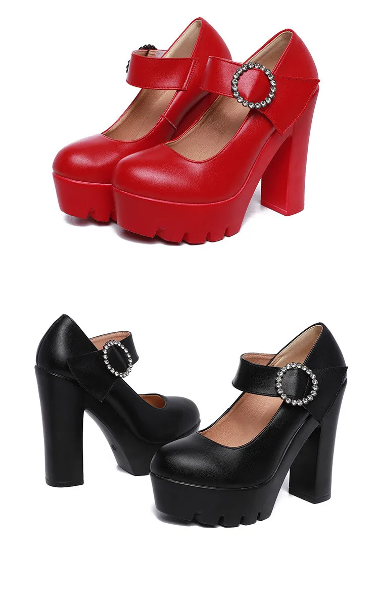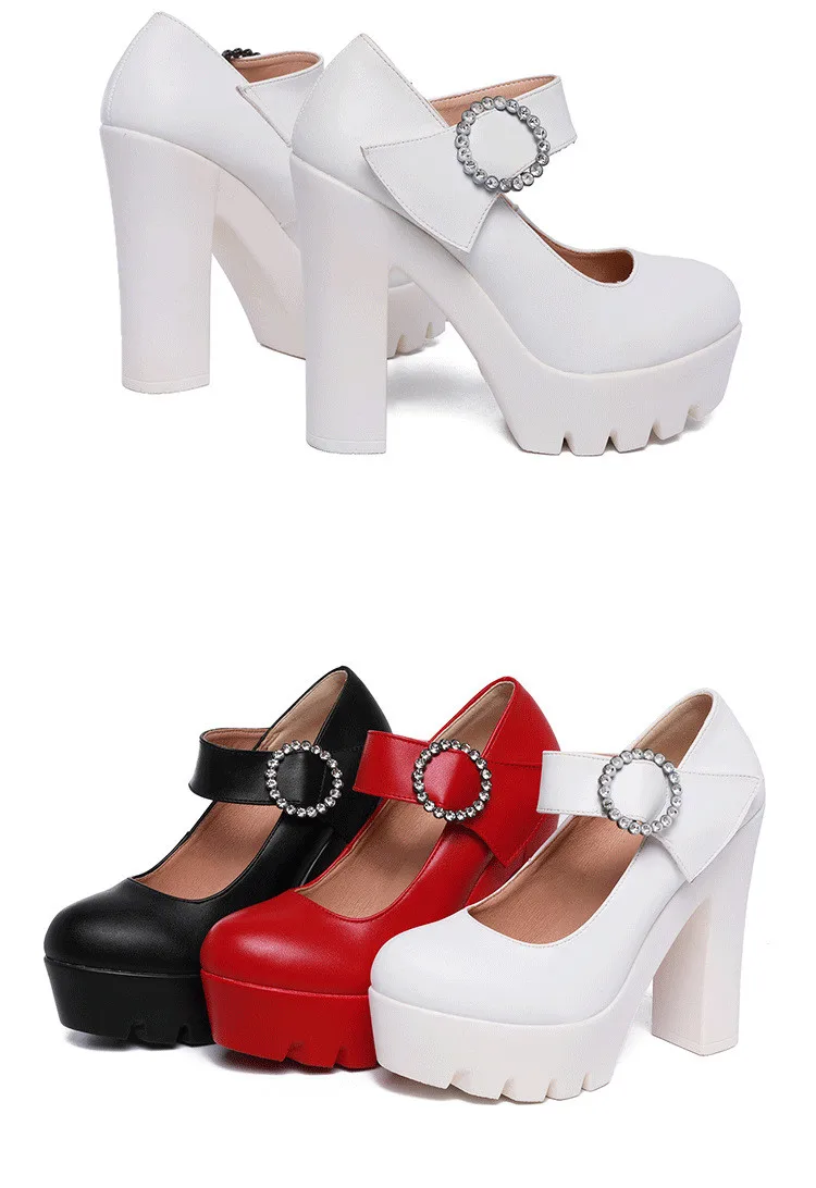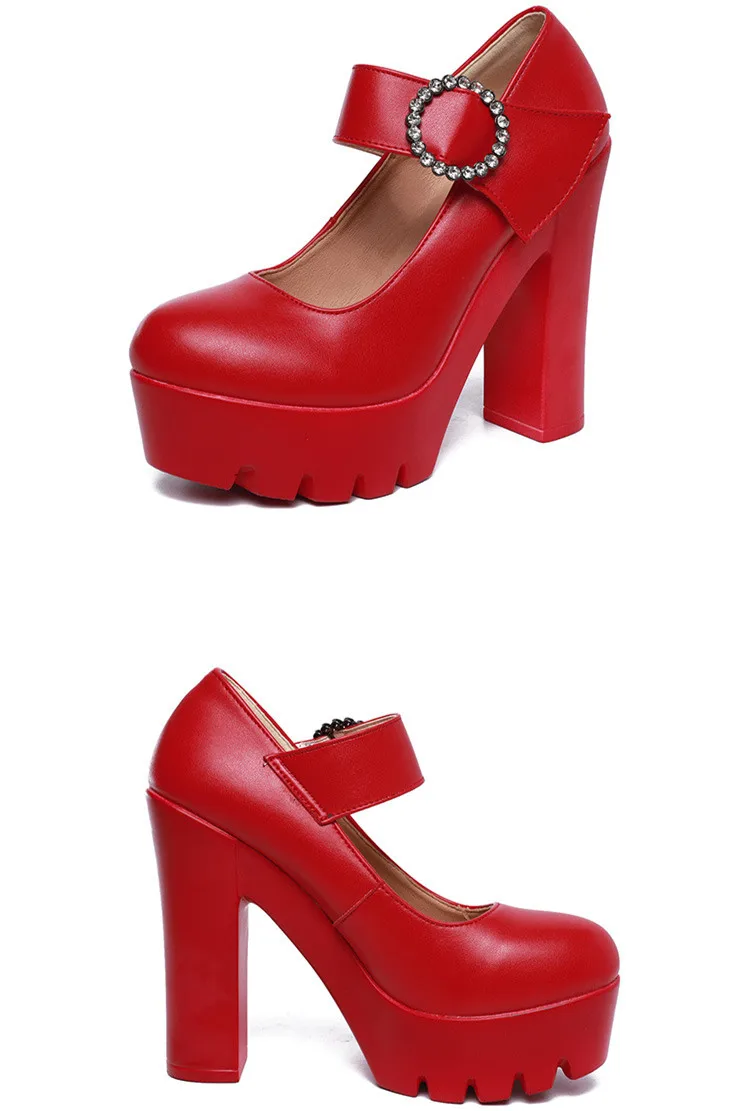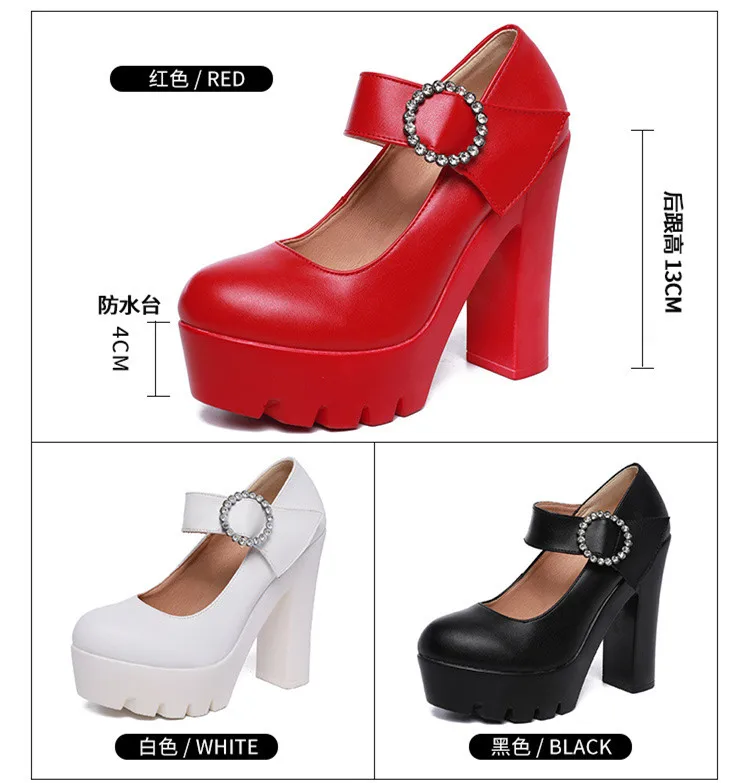 أسود أحمر أبيض ماري جينس سوبر سميكة عالية الكعب منصات مضخات للنساء عادية الربيع الخريف أحذية الحفلات مكتنزة السيدات A0010