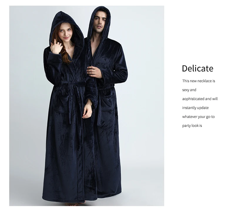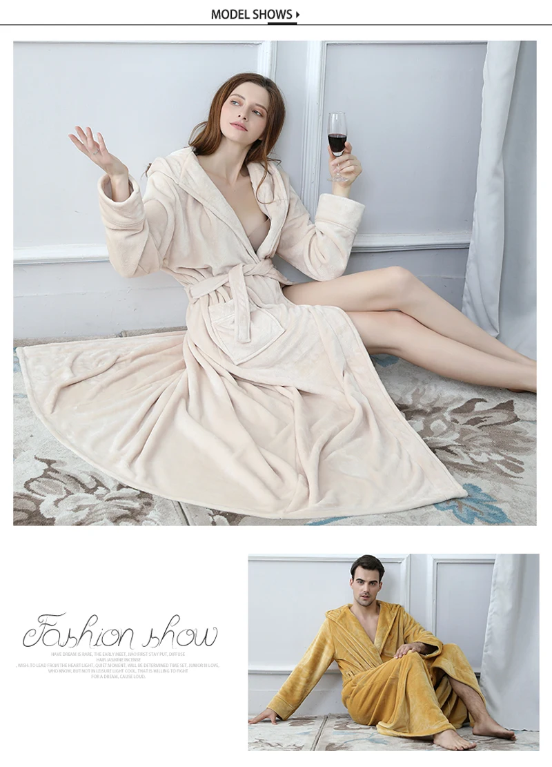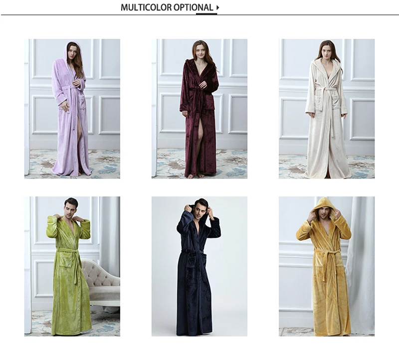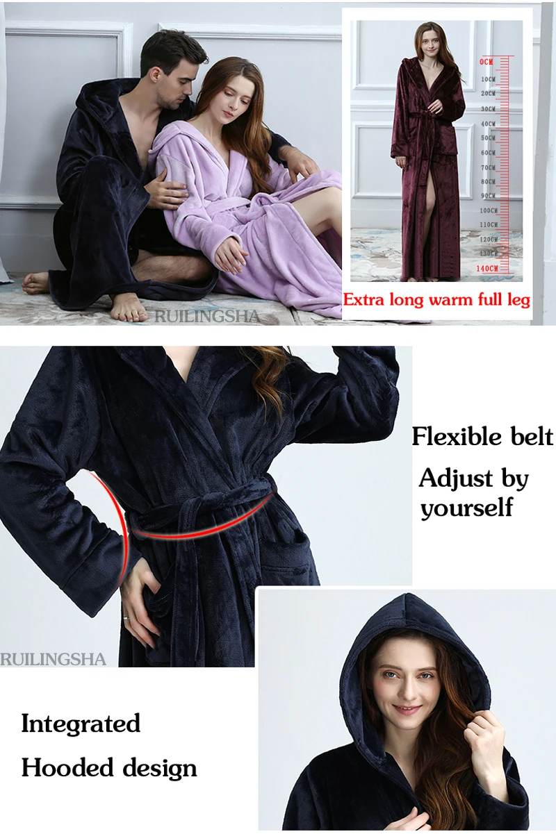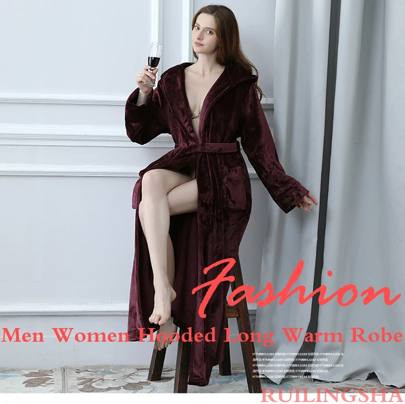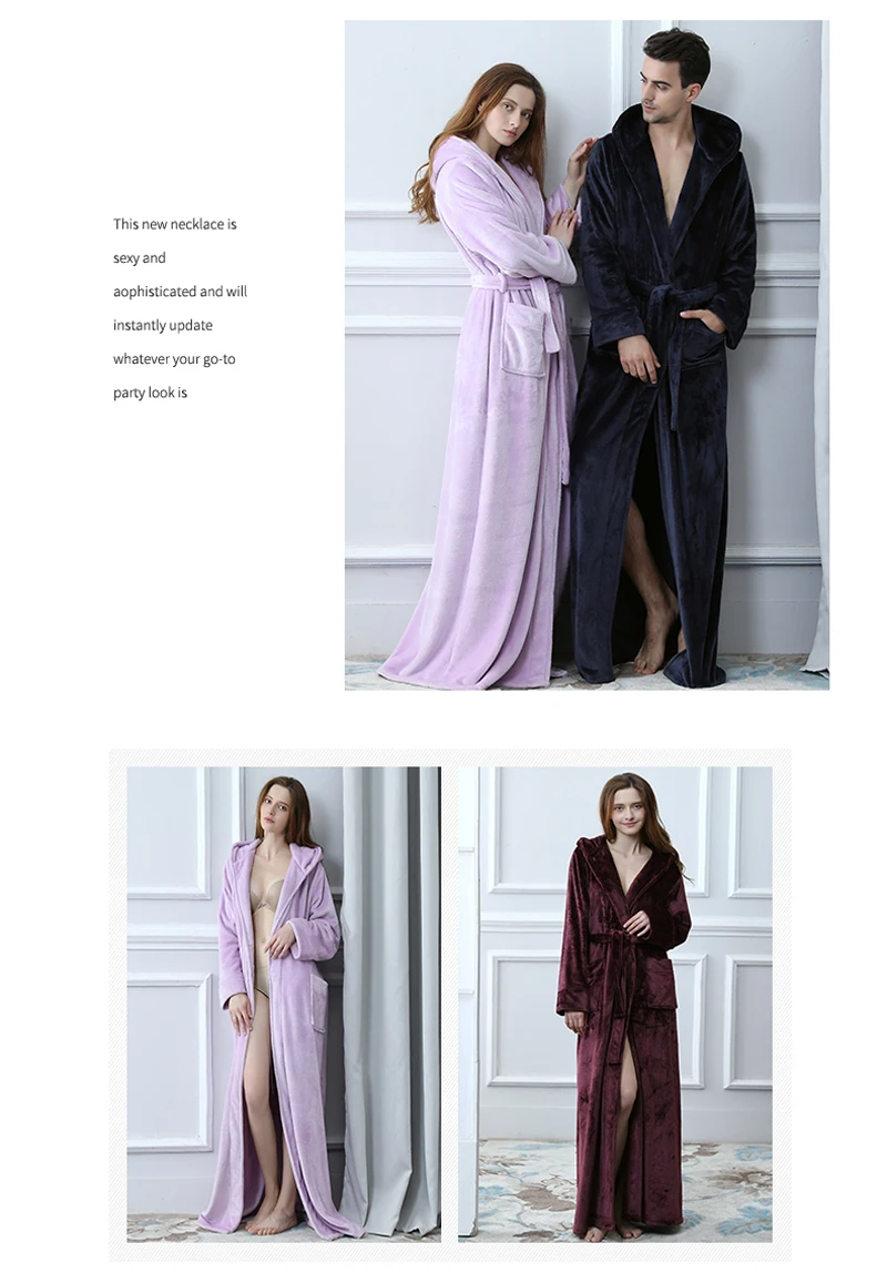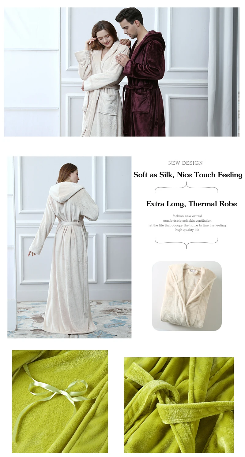 النساء مقنعين اضافية طويلة الدافئة المخملية Bathrobe عشاق الشتاء الفانيلا روب استحمام طول الكلمة الحرارية روب للنوم الرجال ملابس خاصة