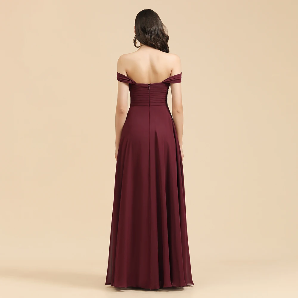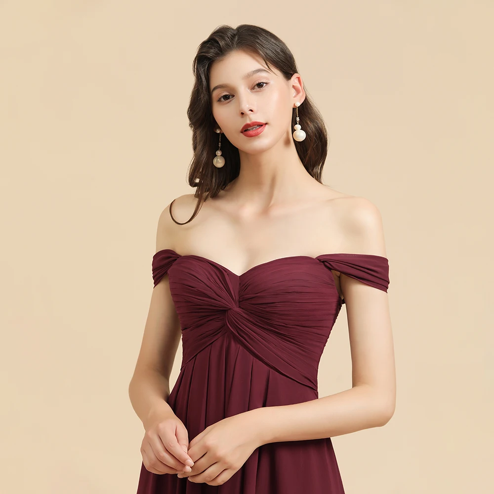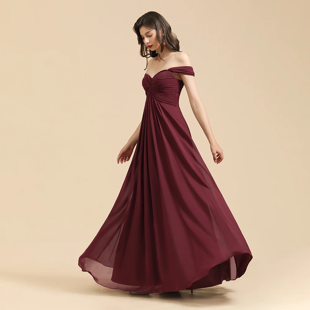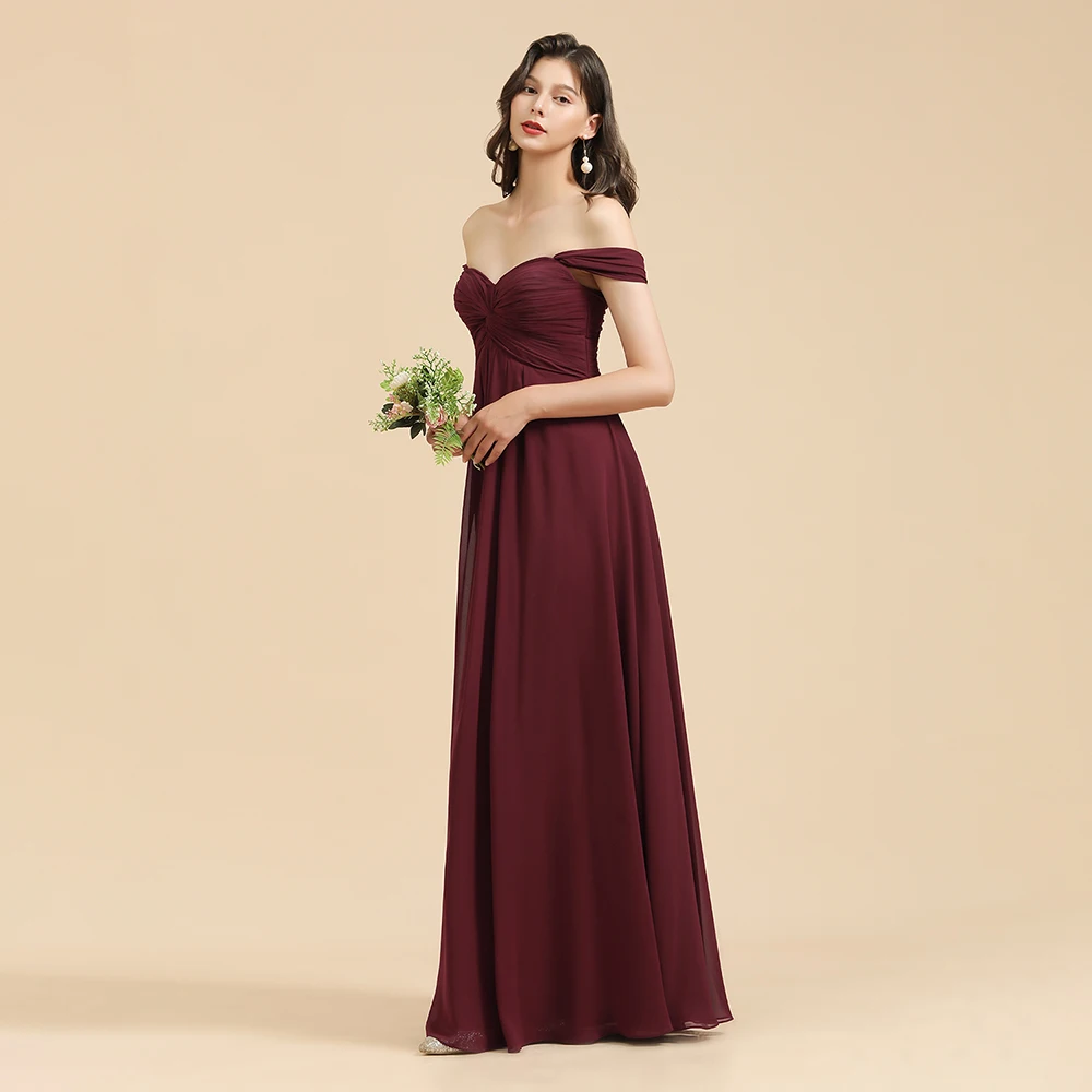 العرف النبيذ الأحمر حجم كبير فساتين وصيفة الشرف طويلة الخريف مساء فساتين مطر مطرزة