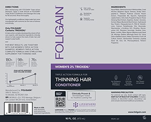 بلسم فوليجين ثلاثي الفعالية للشعر الخفيف مع 2٪ تريوكسيديل | بلسم تحفيز الشعر | بلسم مكثف للنساء (16 أونصة) (15244)
