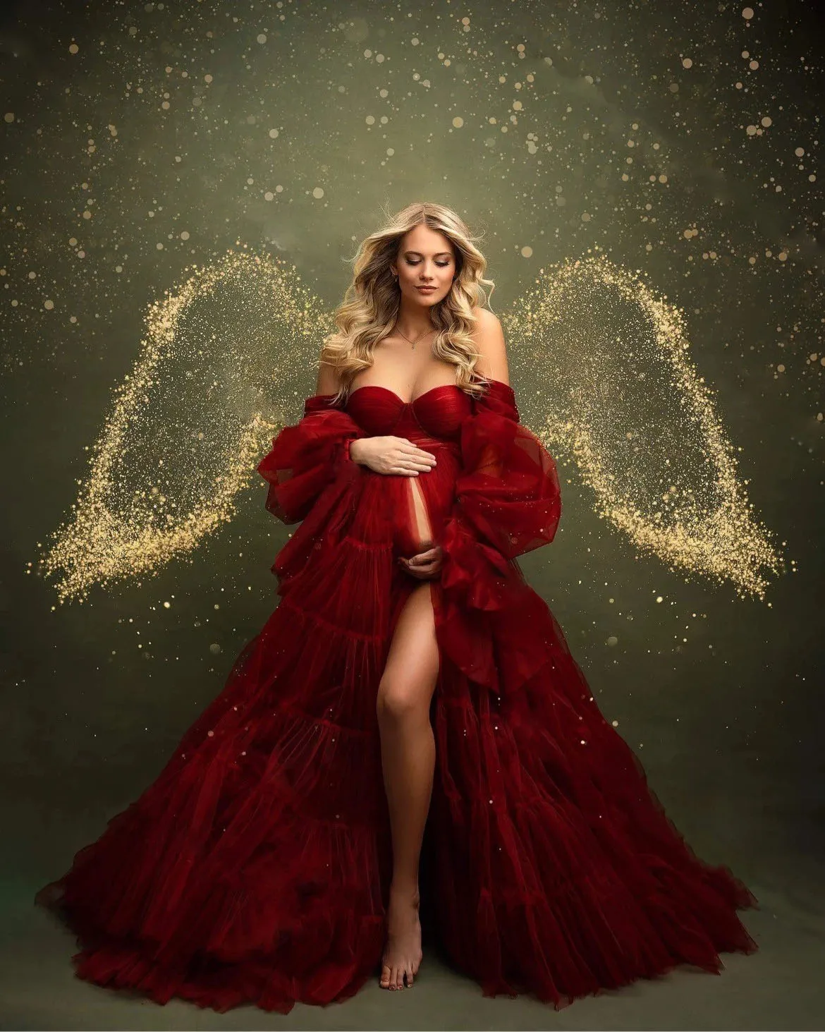 بورجوندي منتفخ تول فستان حملور الظهر الخصبة الكشكشة فساتين الجلباب بيبي دش التصوير الفوتوغرافي