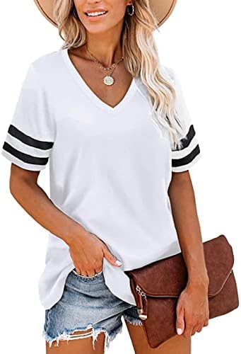 تي شيرت نسائي أنيق كاجوال كلاسيكي برقبة على شكل حرف V بأكمام قصيرة من الأعلى نمط أساسي الربط